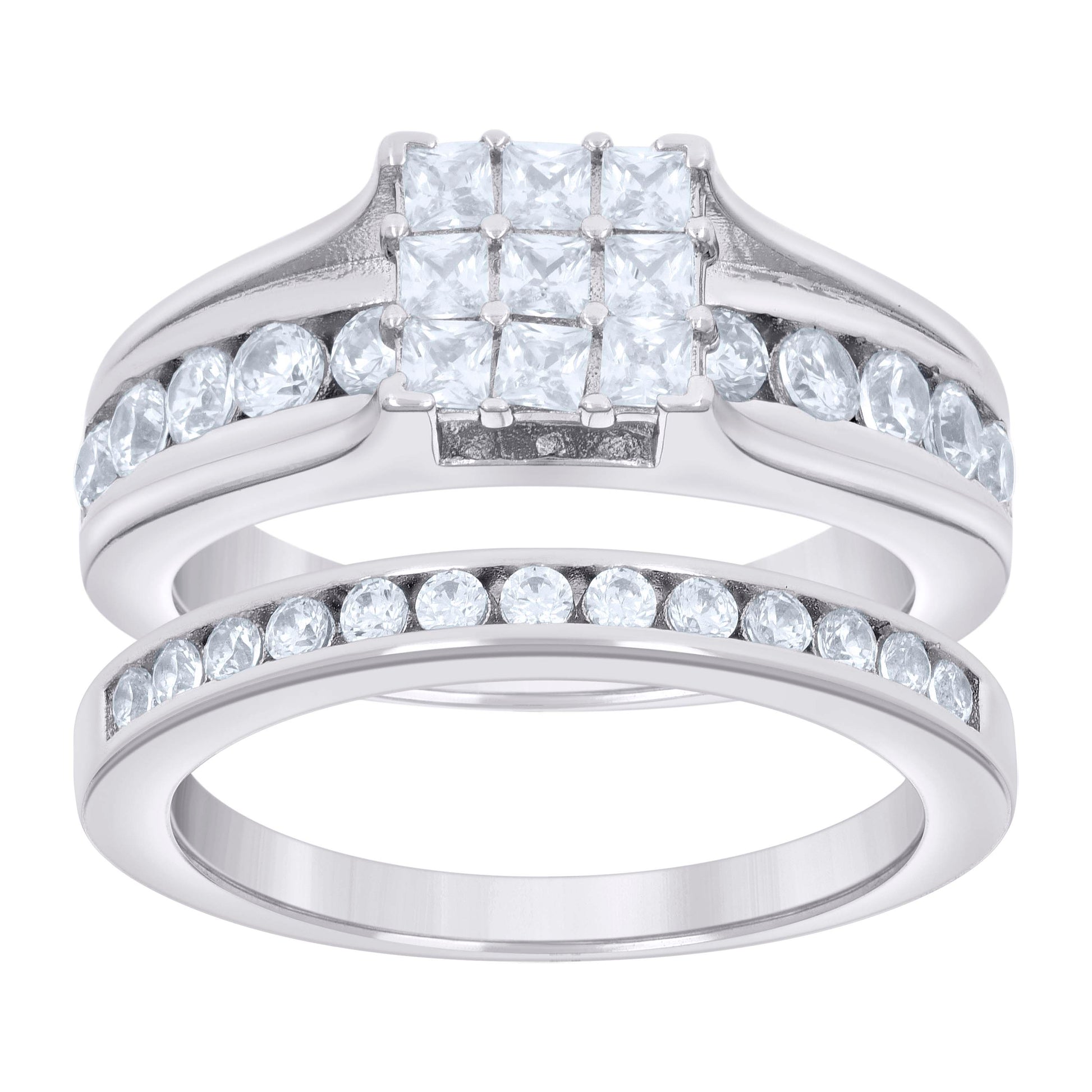 925 Sterling Silver Womens Baguette 0.50ct Round 1.04ct Moissanite Duo Ring Bridal Set Ring Size 6