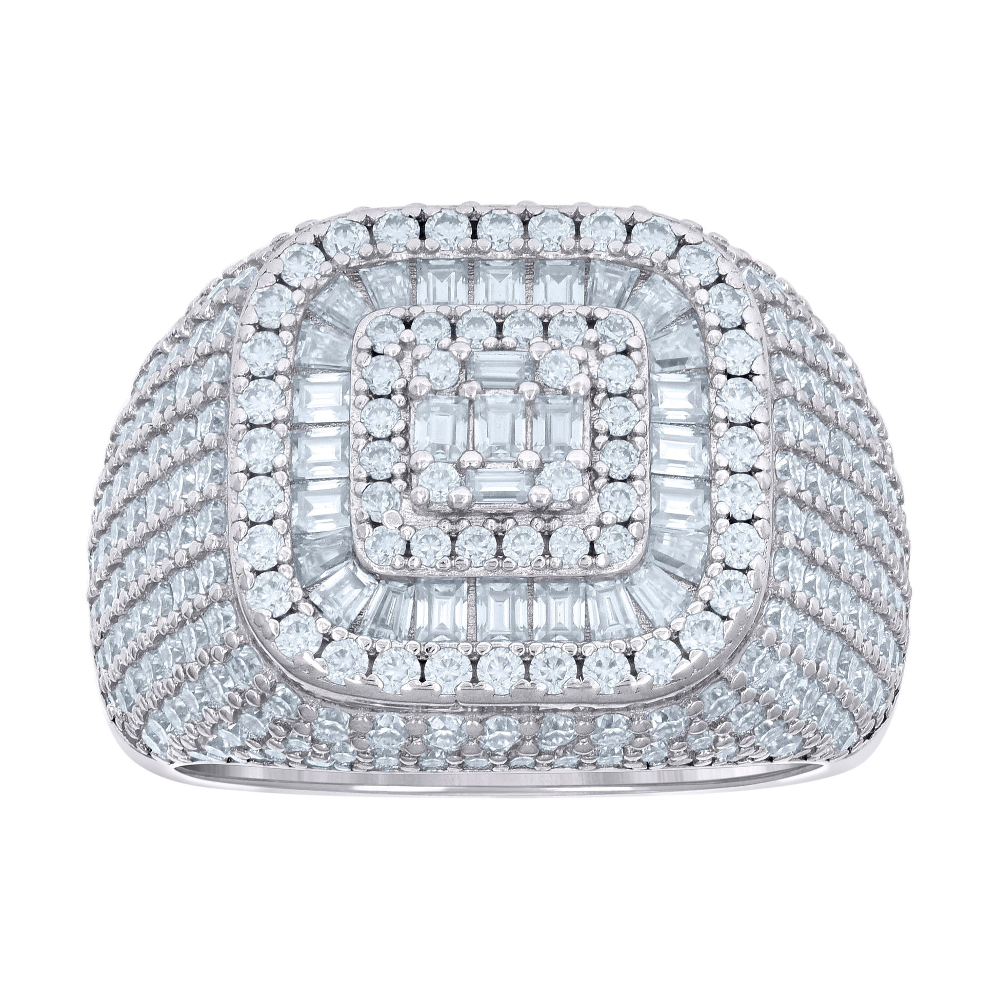 925 Sterling Silver Mens 1.11ct Baguette 3.29ct Round Moissanite Cushion-Shaped Fashion Ring Size 8