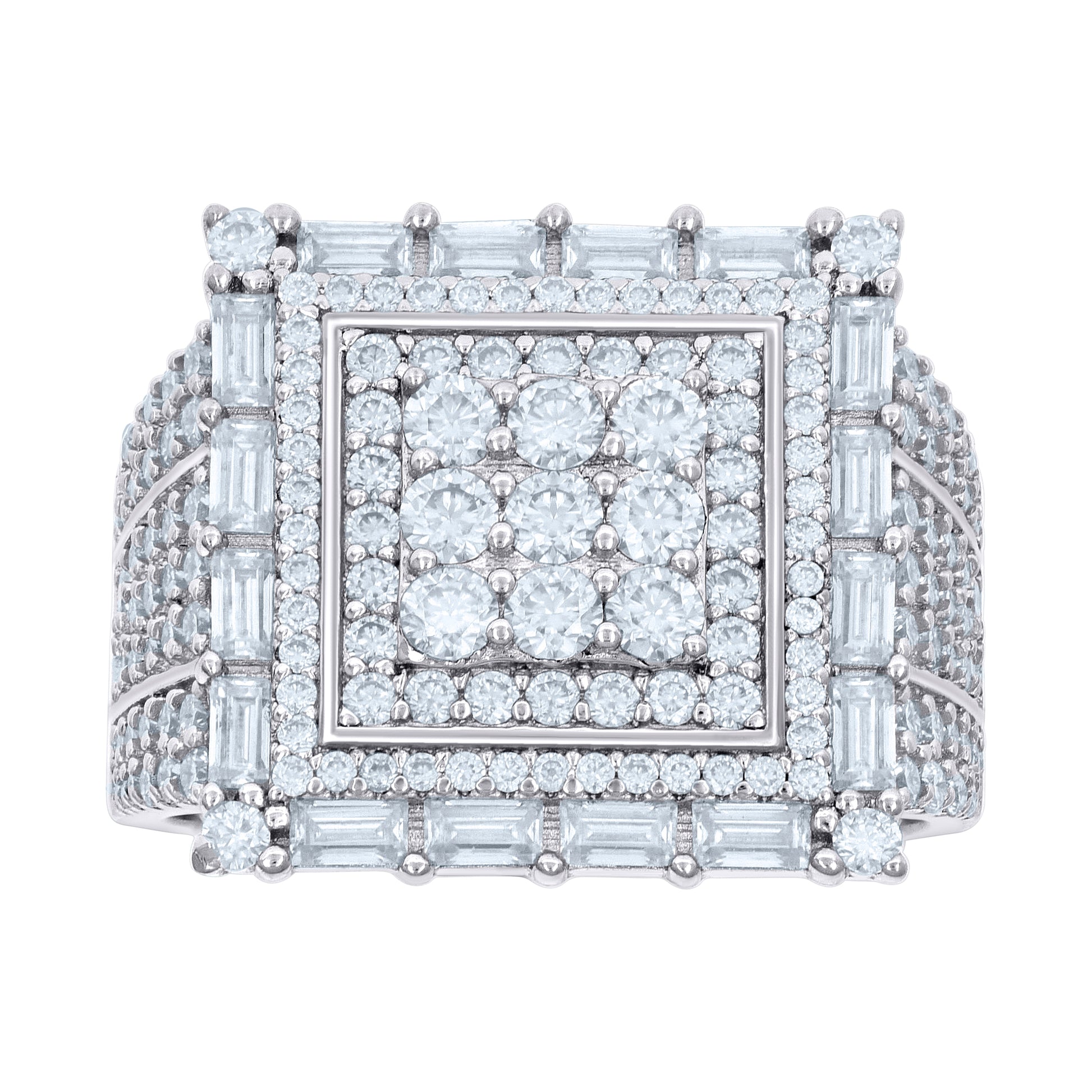 925 Sterling Silver Mens 1.57ct Baguette 2.16ct Round Moissanite Square Head Fashion Ring Size 8