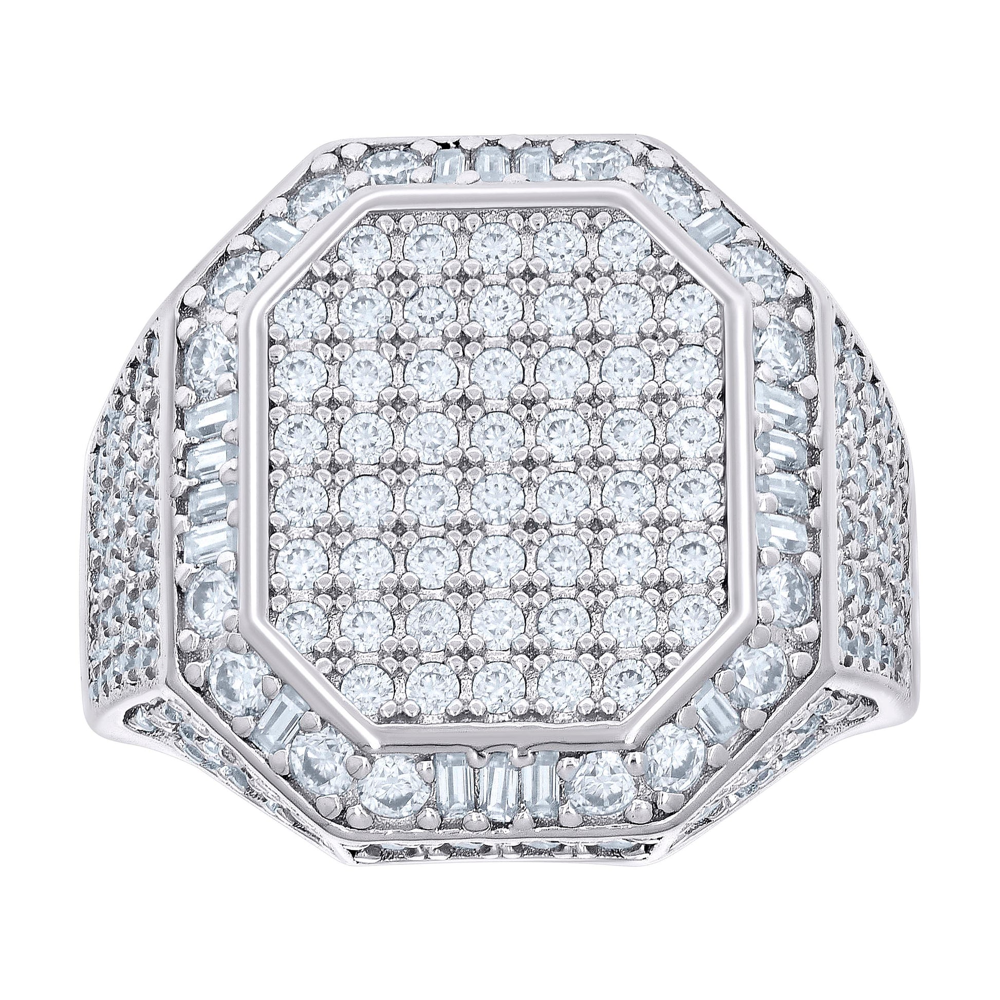 925 Sterling Silver Mens 0.50ct Baguette 2.81ct Round Moissanite Octagon Head Fashion Ring Size 8