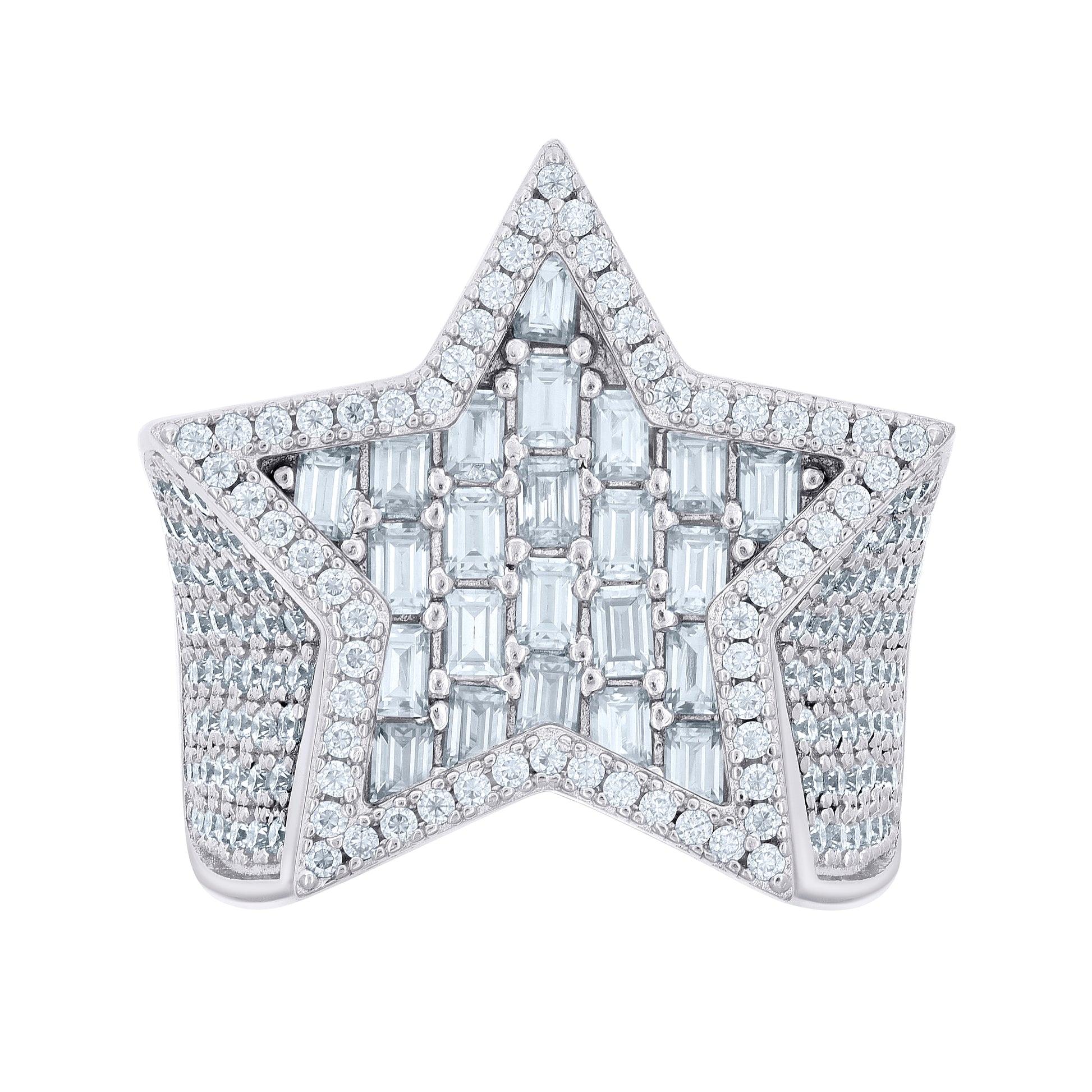925 Sterling Silver Mens 2.25ct Baguette 3.36ct Round Moissanite Star Fashion Ring Size 10