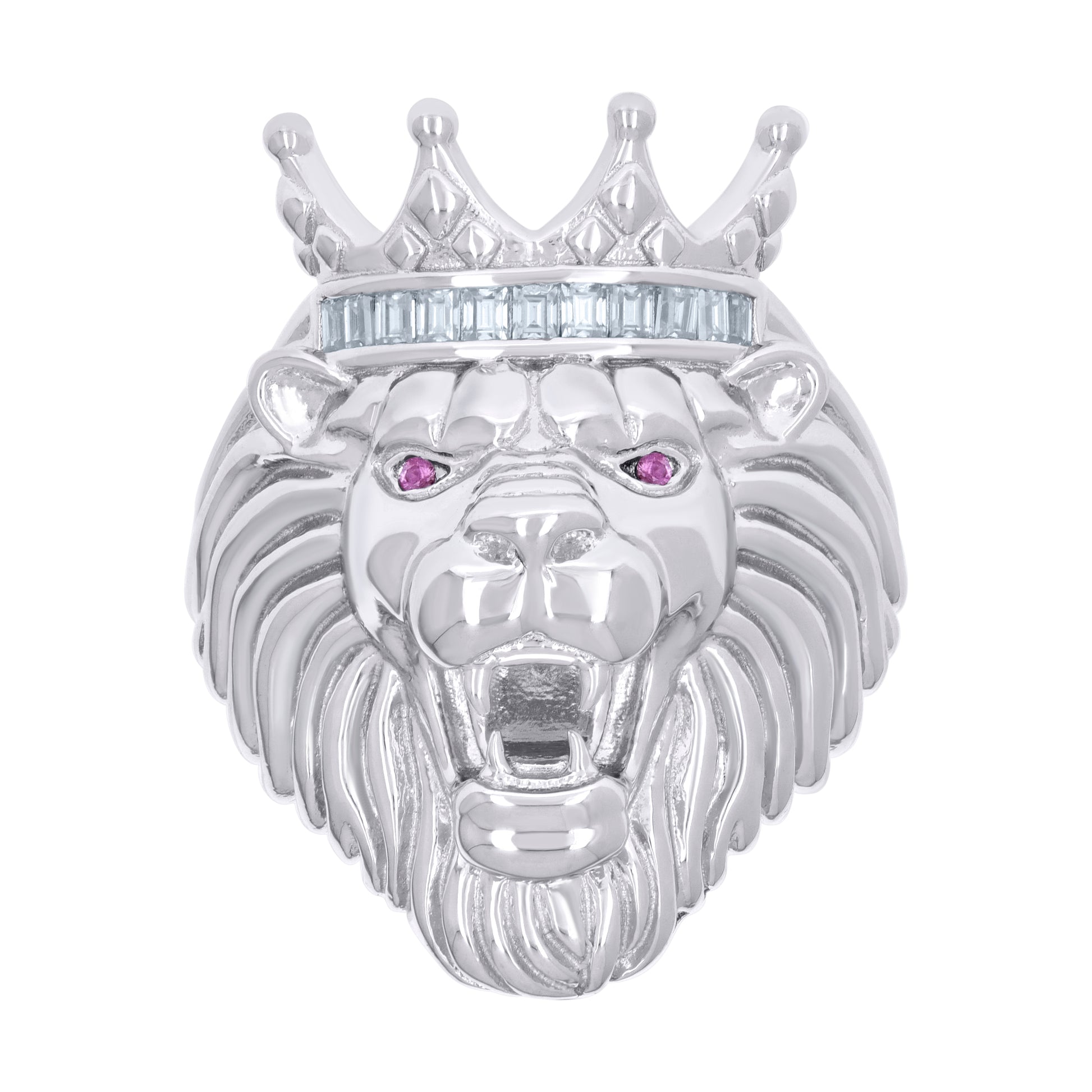 925 Sterling Silver Mens 0.45ct Baguette Pink White Moissanite Leo/Lion Head Ring Size 8
