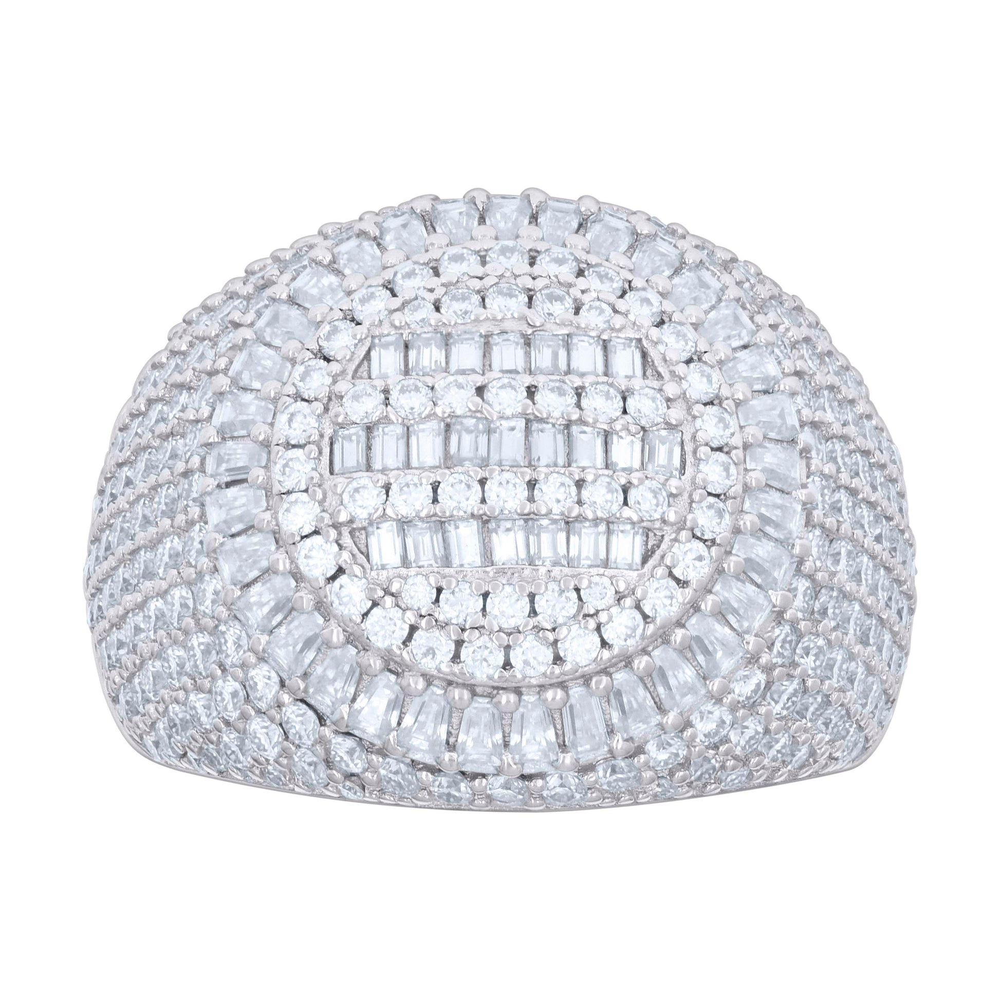 925 Sterling Silver Mens 1.65ct Baguette 2.93ct Round Moissanite Fashion Ring Size 10
