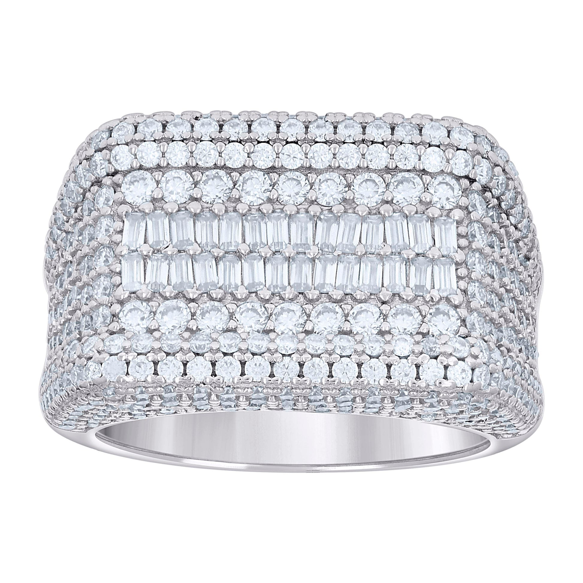 925 Sterling Silver Mens 0.79ct Baguette 3.83ct Round Moissanite Fashion Ring Size 10