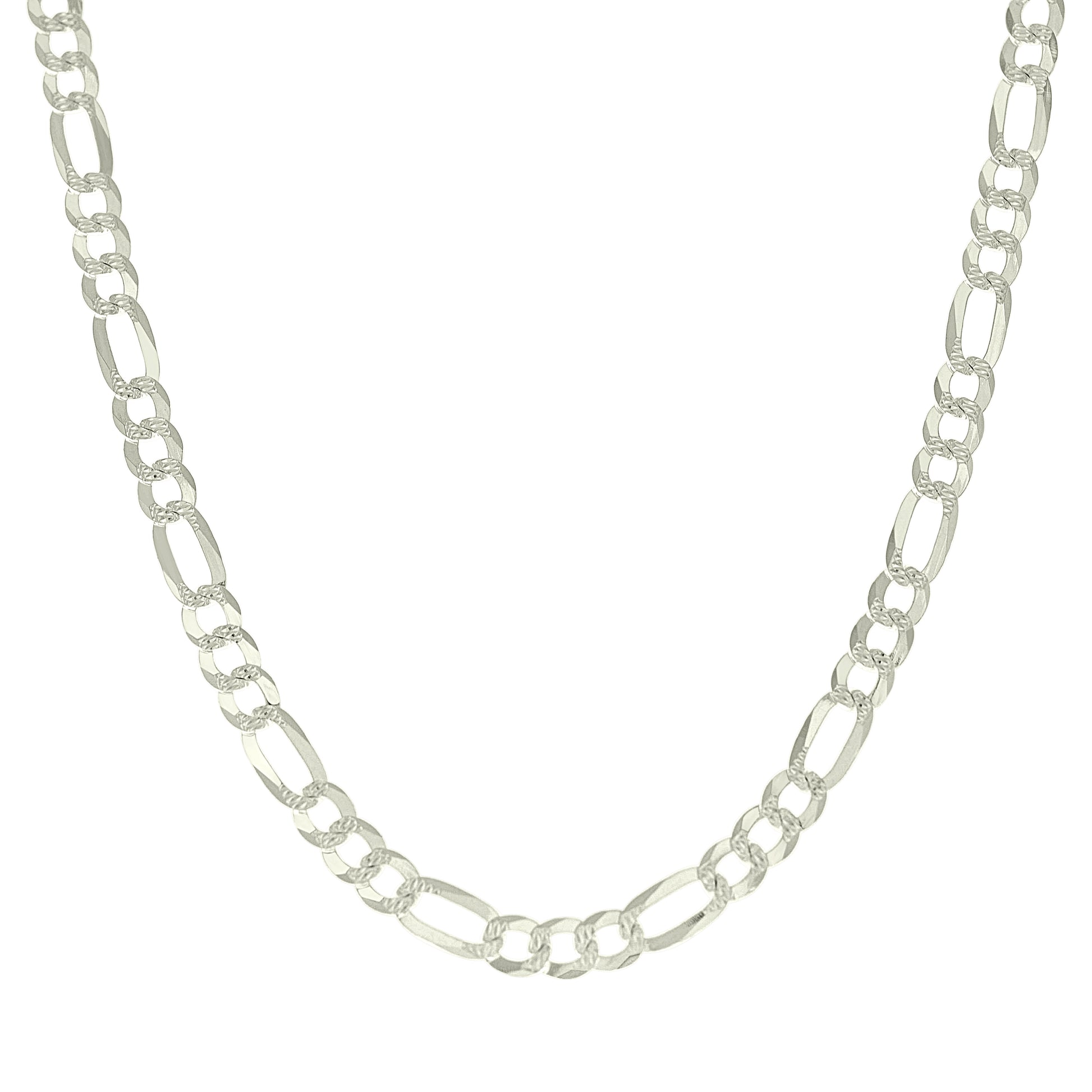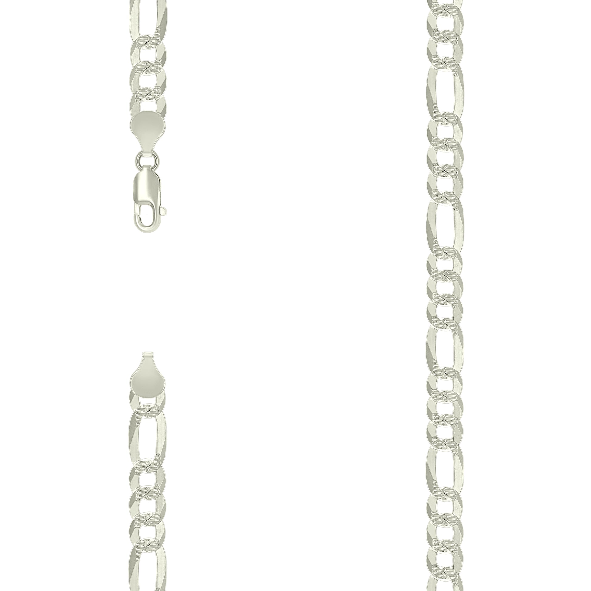925 Silver Pave Super Flat Figaro Chain 7.7mm