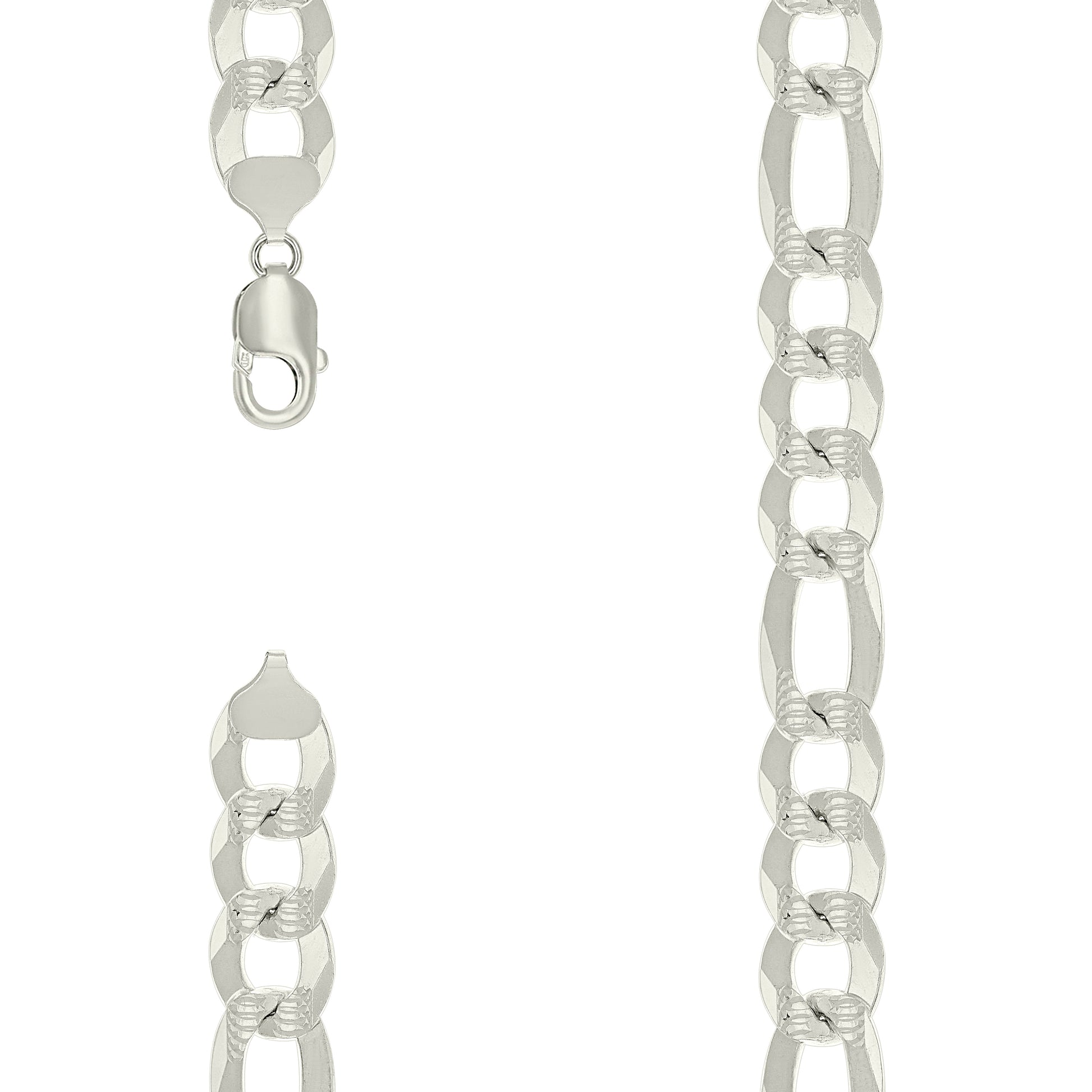 925 Silver Pave Super Flat Figaro Chain 14mm