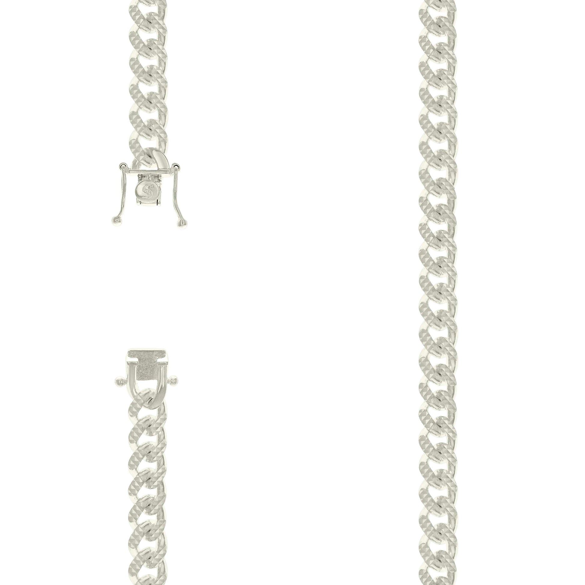 925 Silver Solid Miami Cuban Pyramid Chain Silver 8.4-20"
