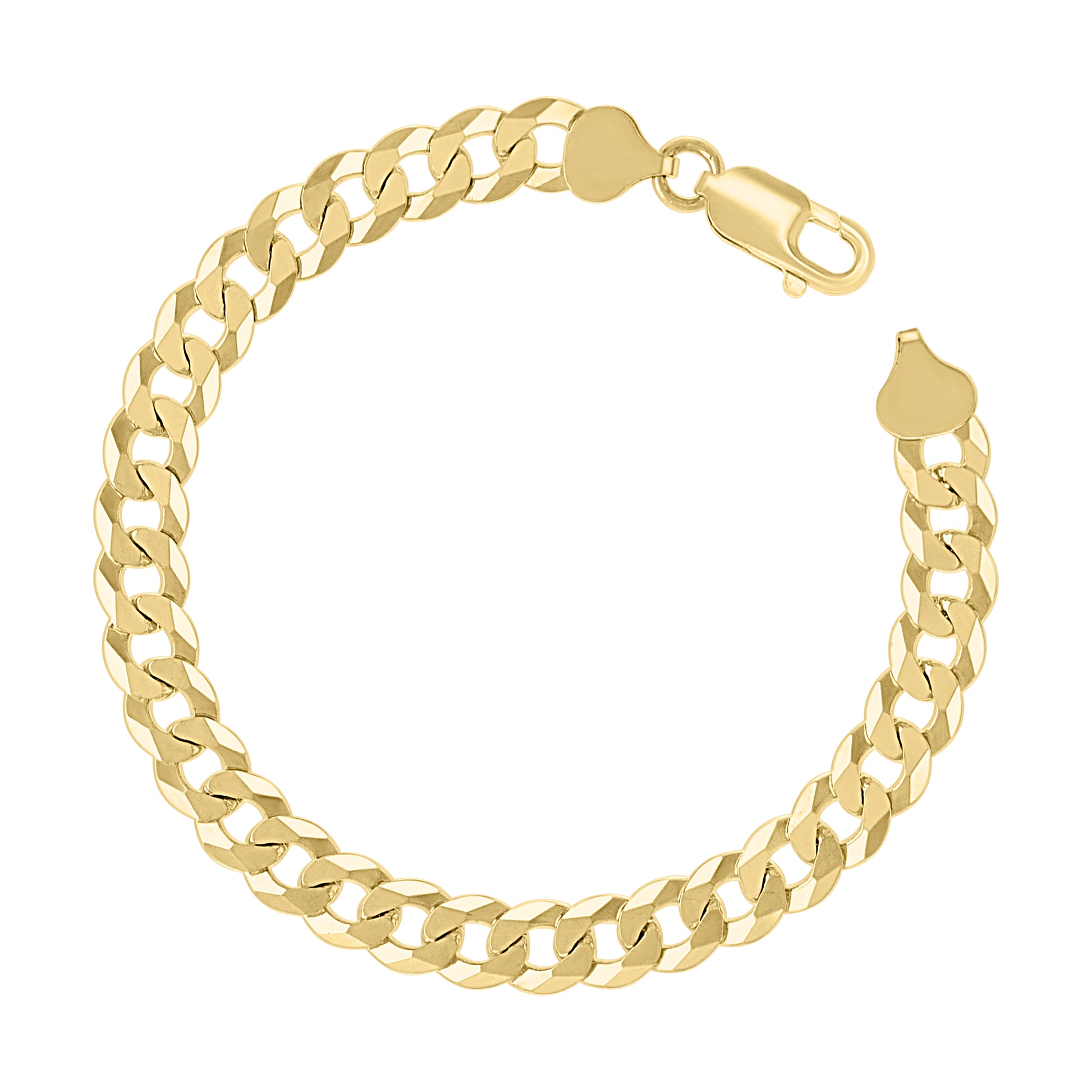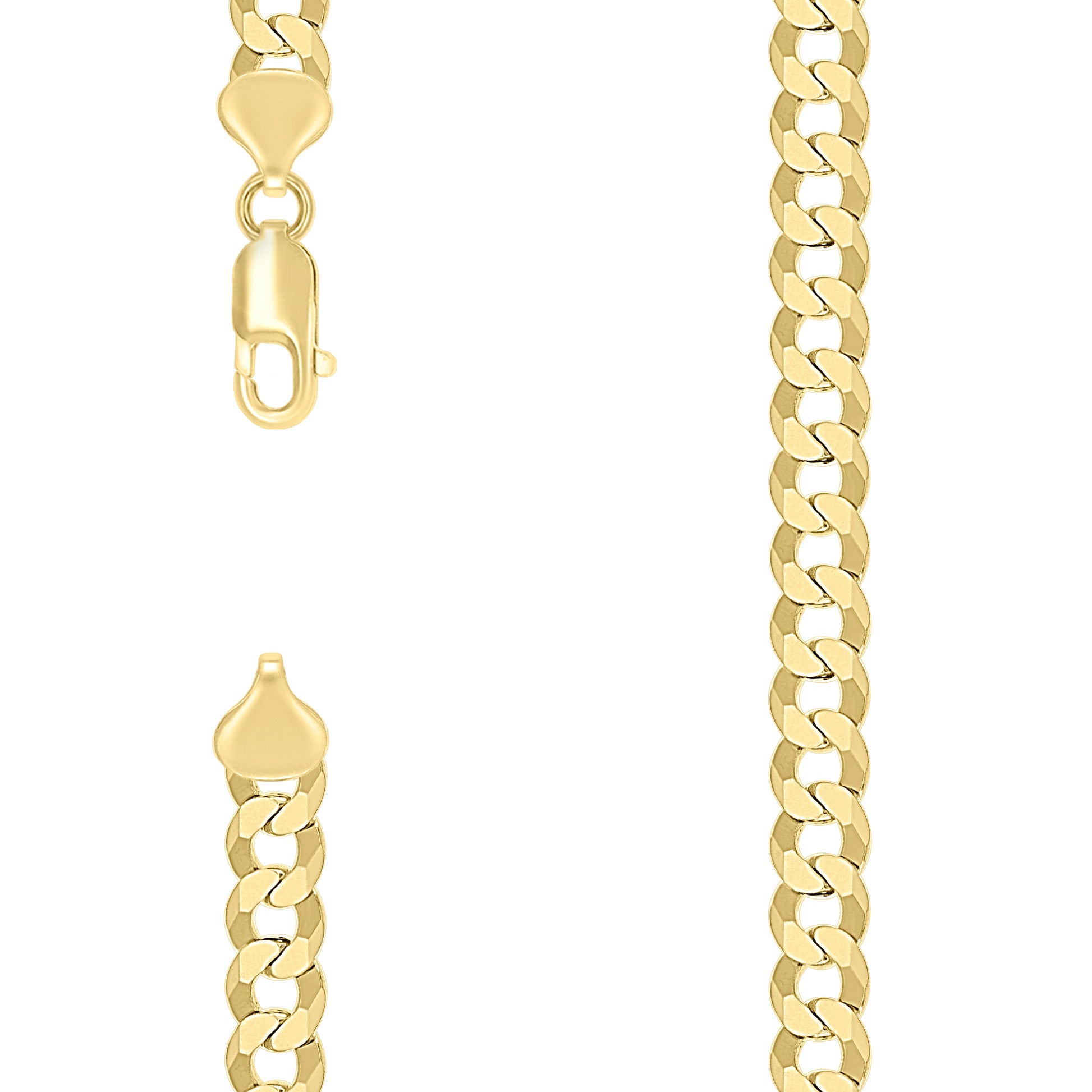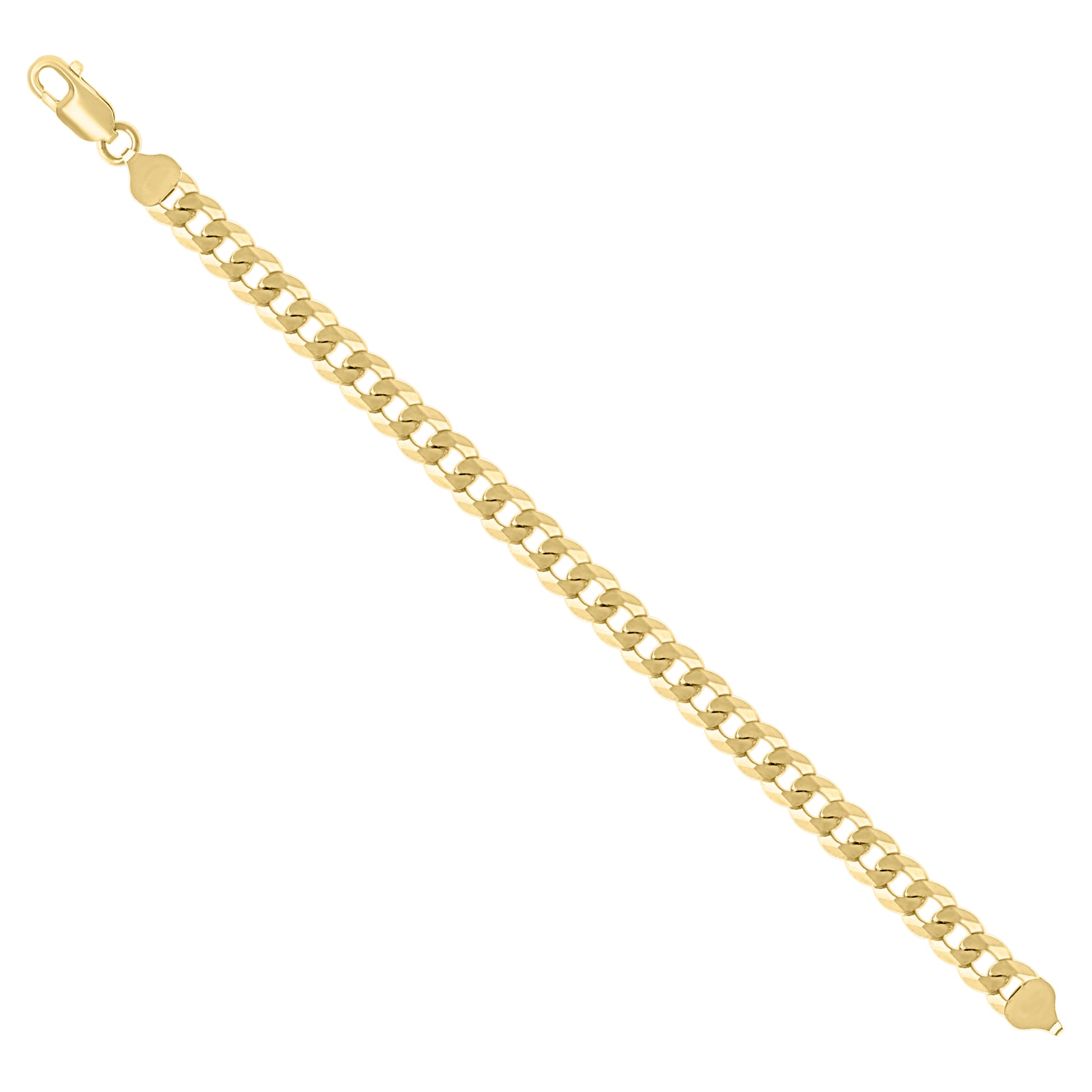 925 Silver Solid Super Flat Cuban Chain Yellow 7.4mm