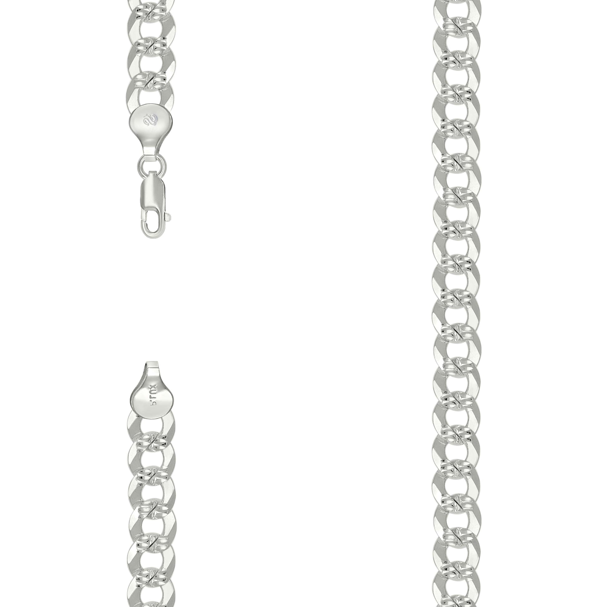 925 Silver Solid Pave Super Flat Cuban Chain Silver 7.8mm