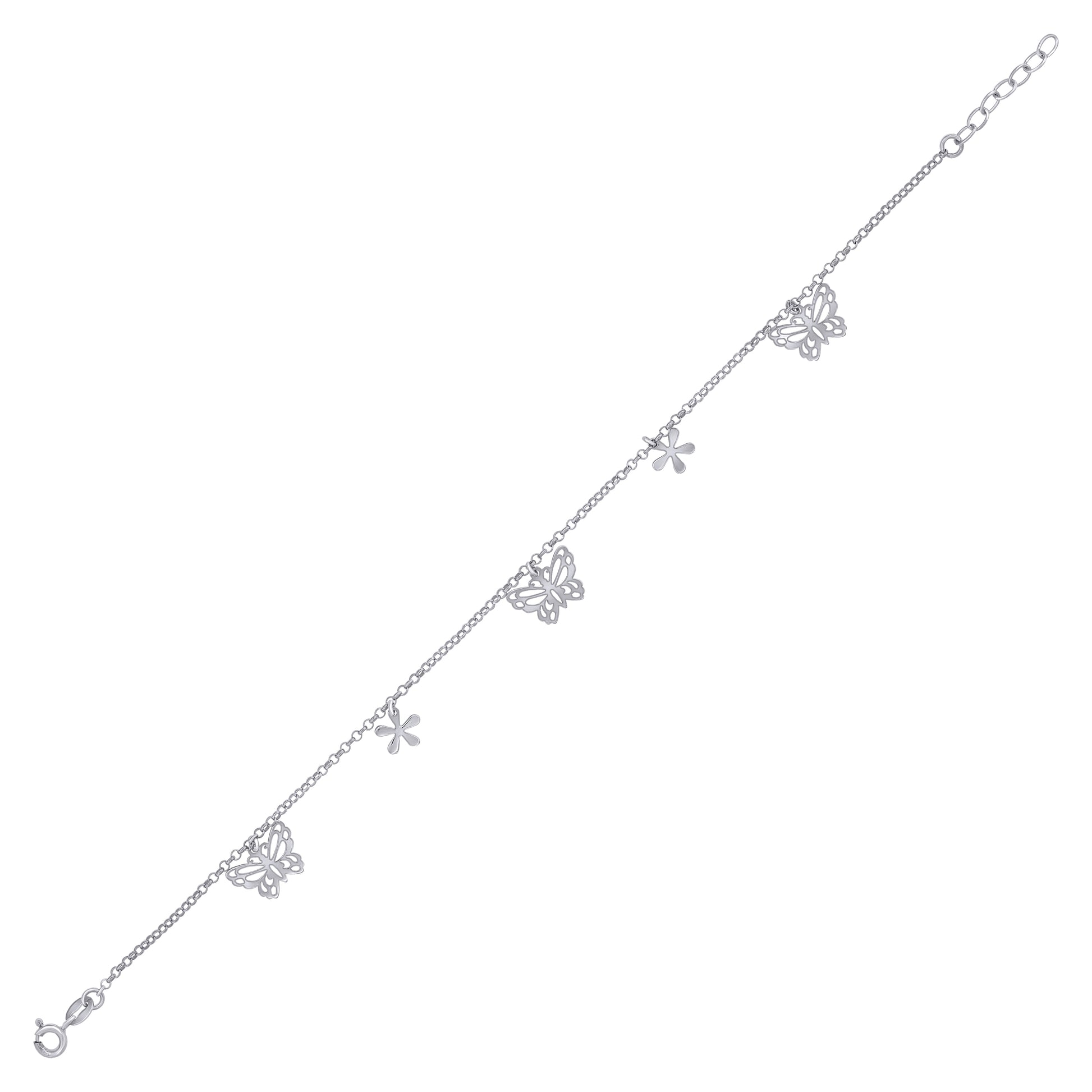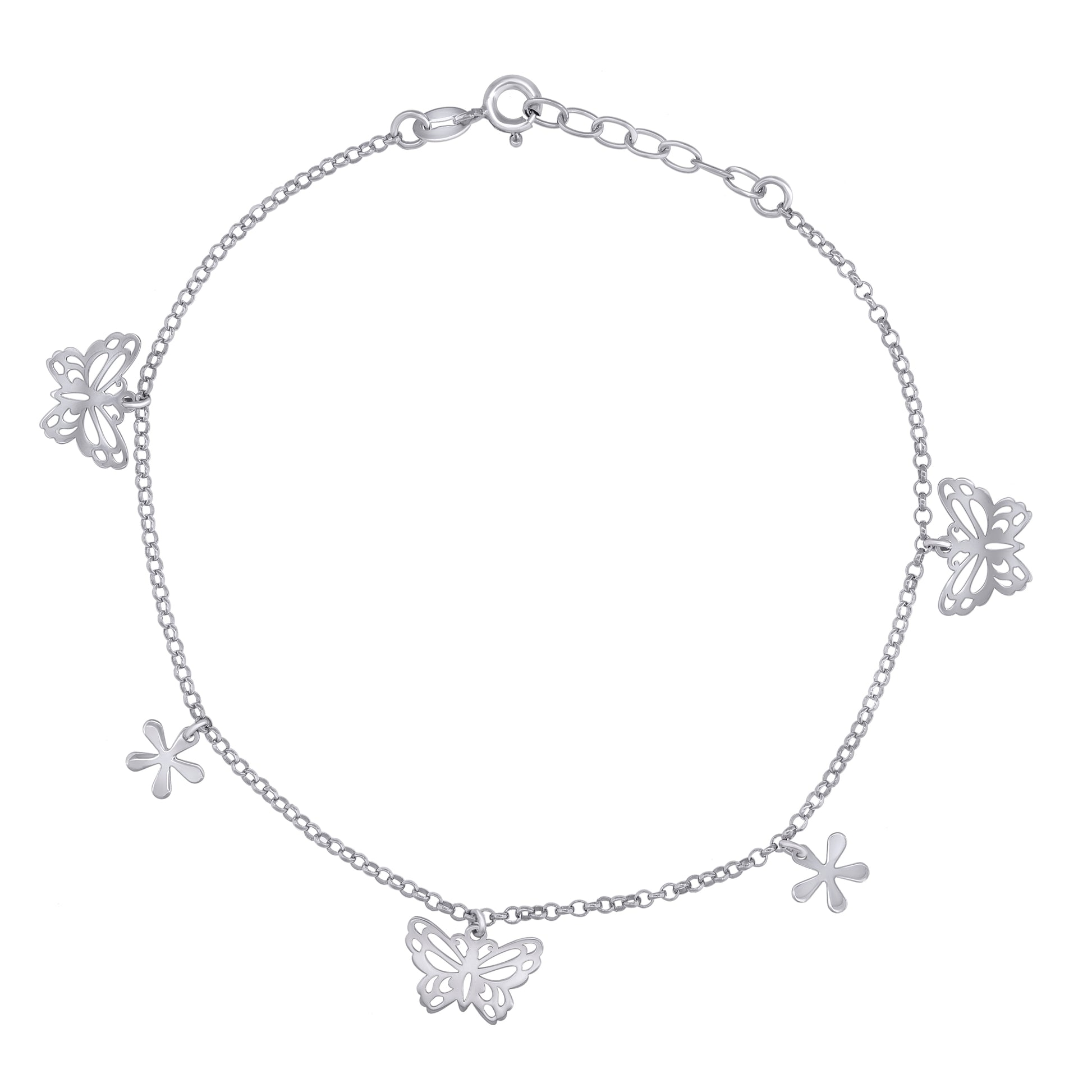 925 Sterling Silver Women Fashion Butterfly & Flower Anklet Size 10 Inches