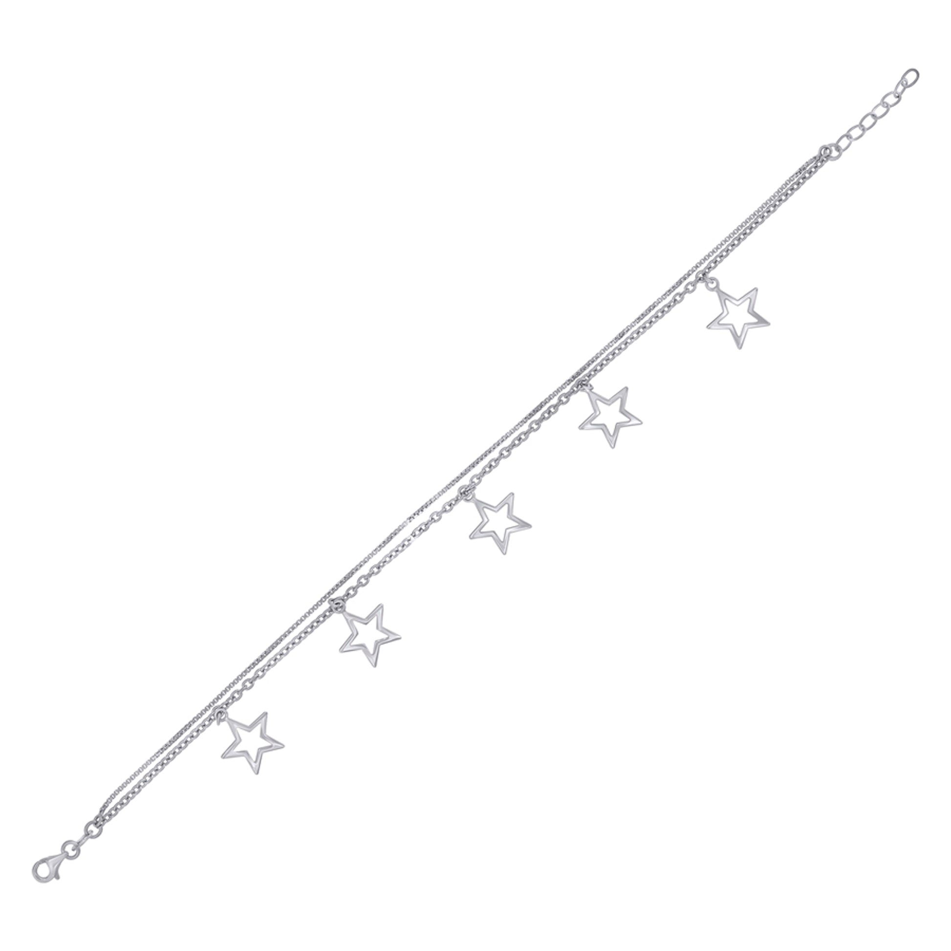 925 Sterling Silver Women Fashion Stars Anklet Size 10 Inches