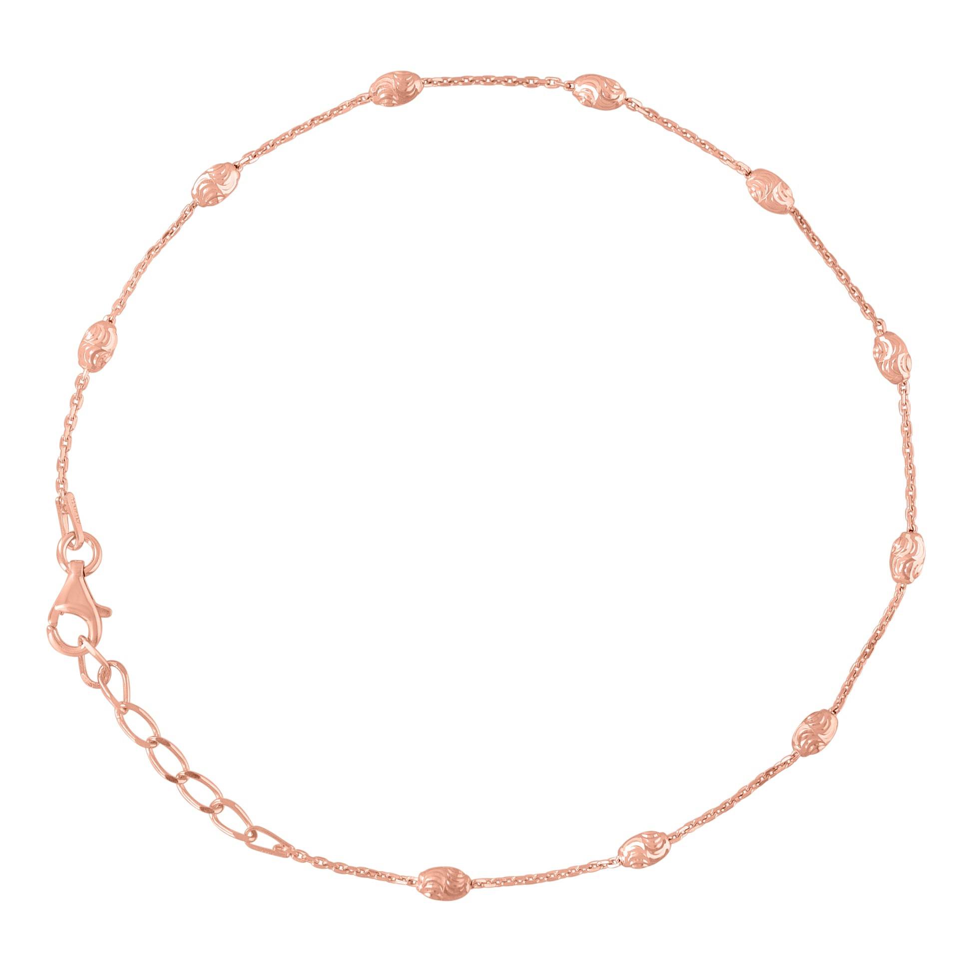 925 Sterling Silver Rose-Tone Womens Station Oval Chain Anklet 3 mm Size 10 Inches