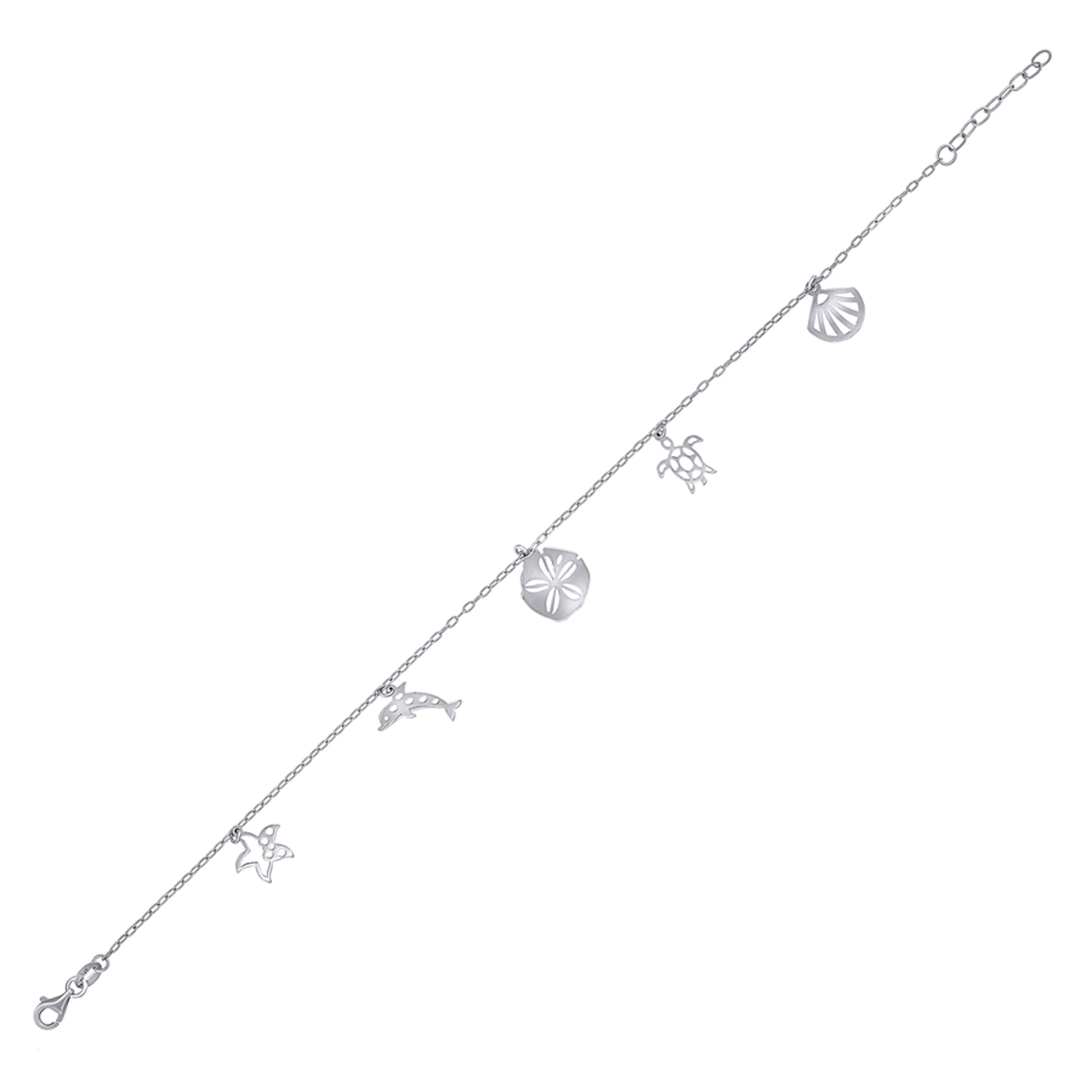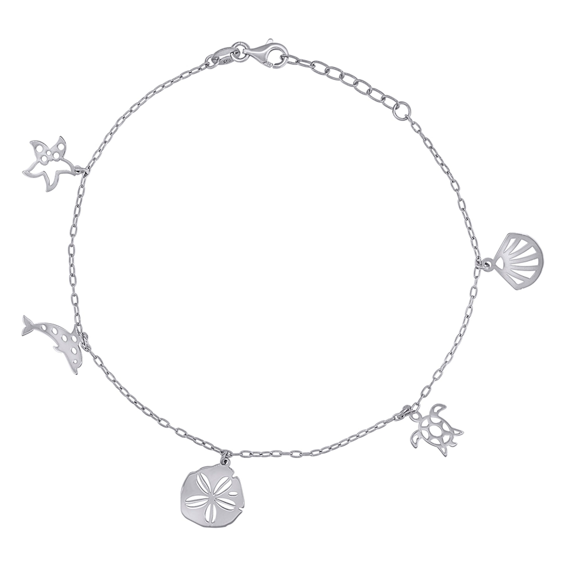 925 Sterling Silver Womens Ocean Life Charms Anklet Size 10 Inches