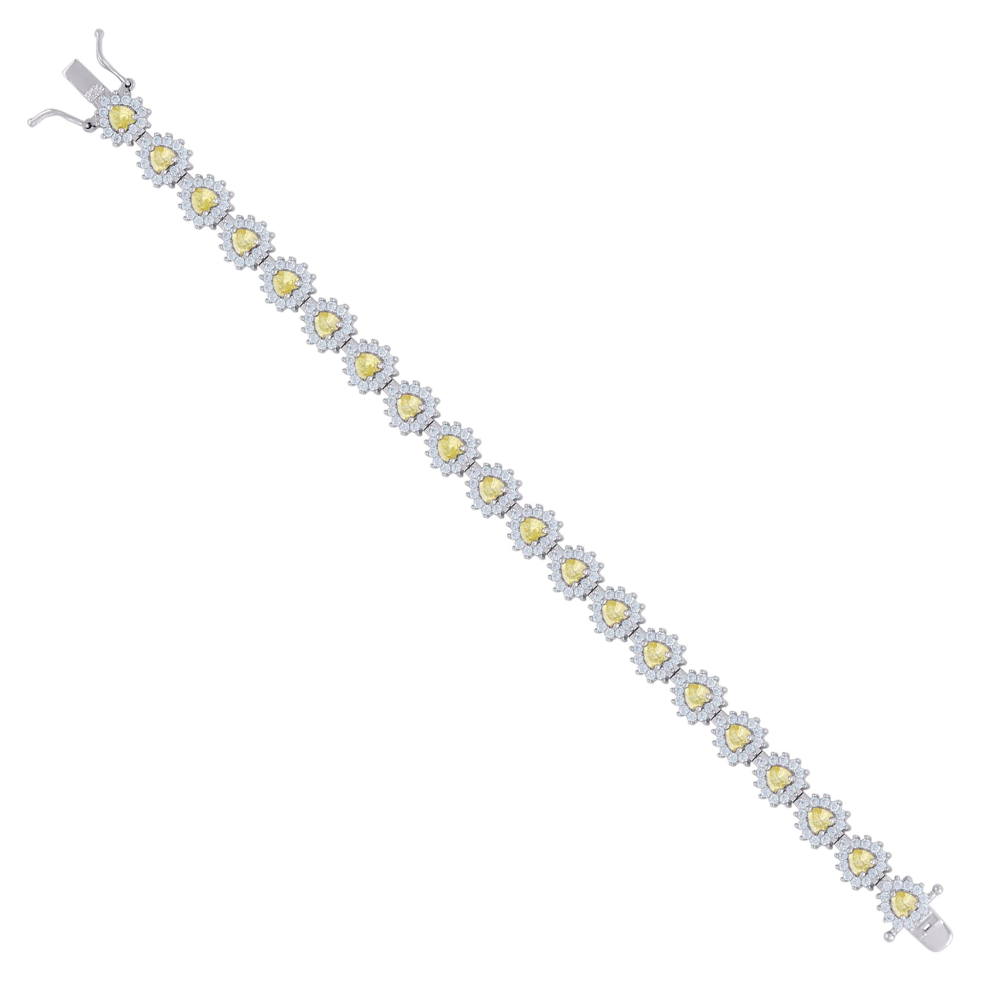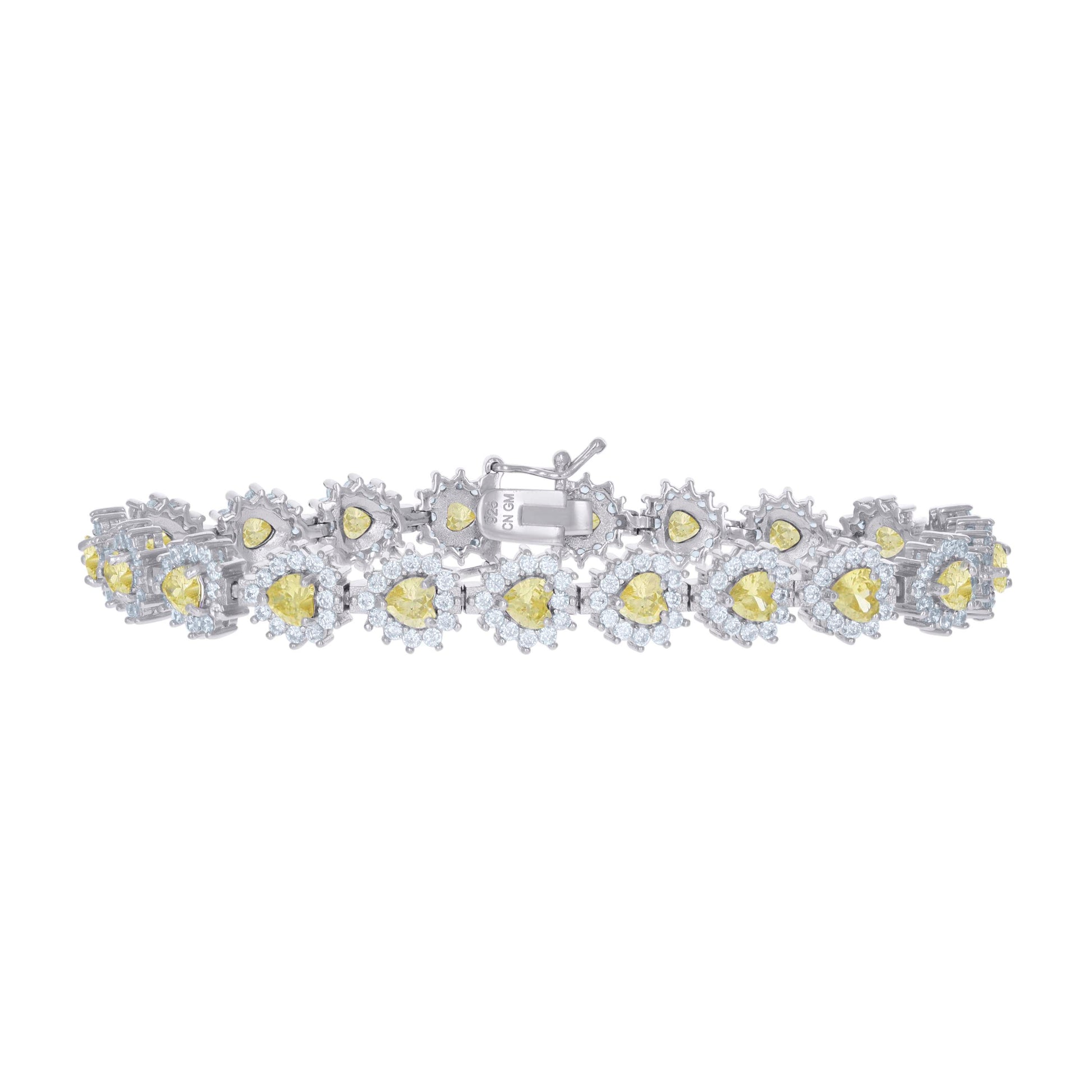925 Sterling Silver Womens Yellow White Cubic-Zirconia Heart Link Fashion Bracelet Size 7 Inches