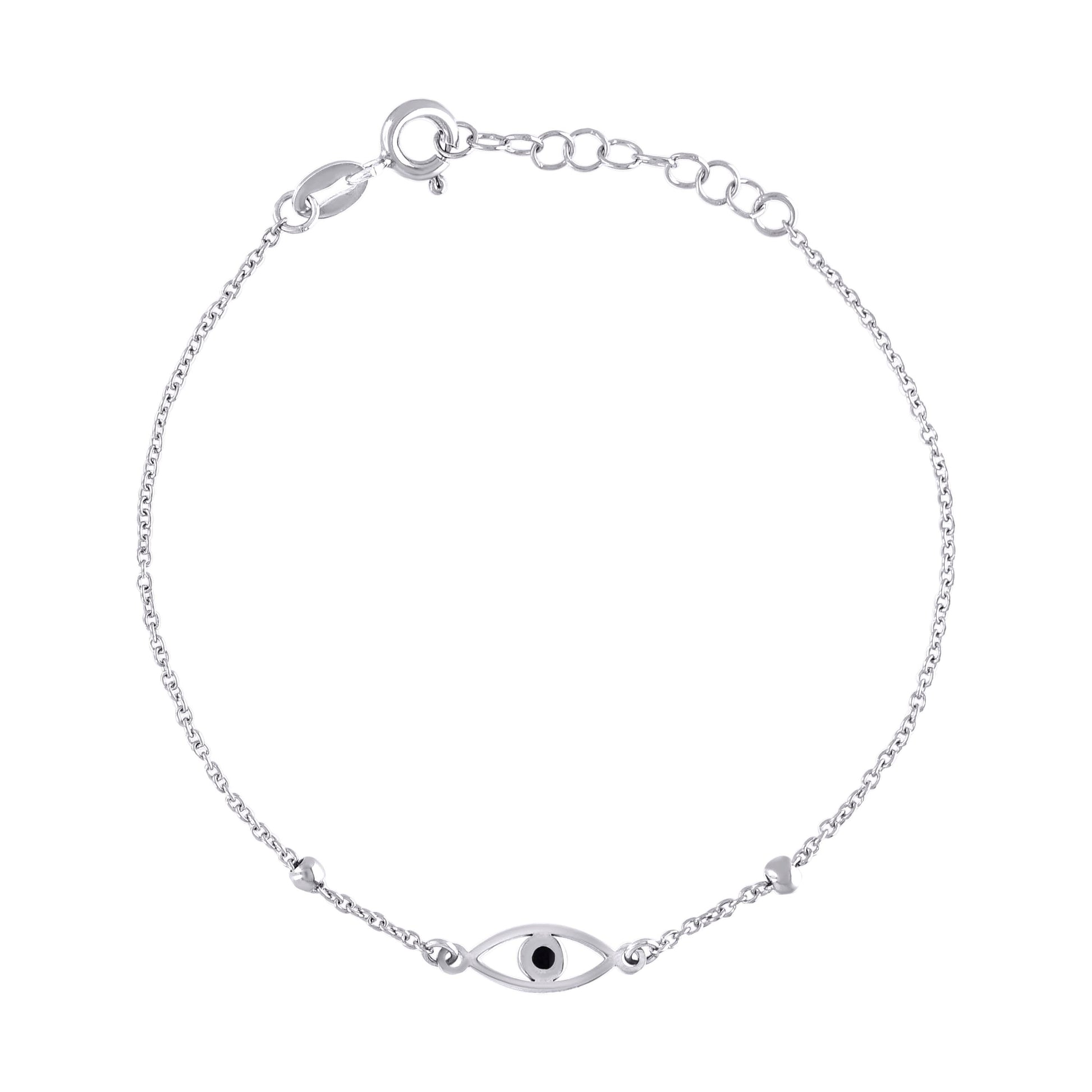 925 Sterling Silver Womens Black Enameled Evil Eye Good Luck Charm Bracelet Size 7.5 Inches
