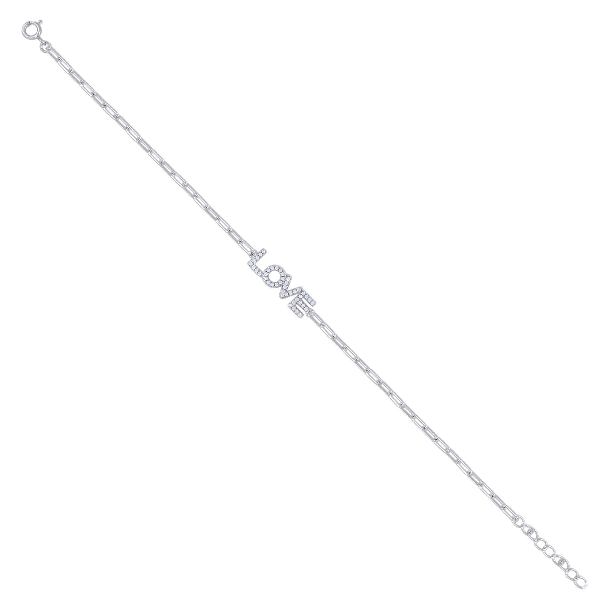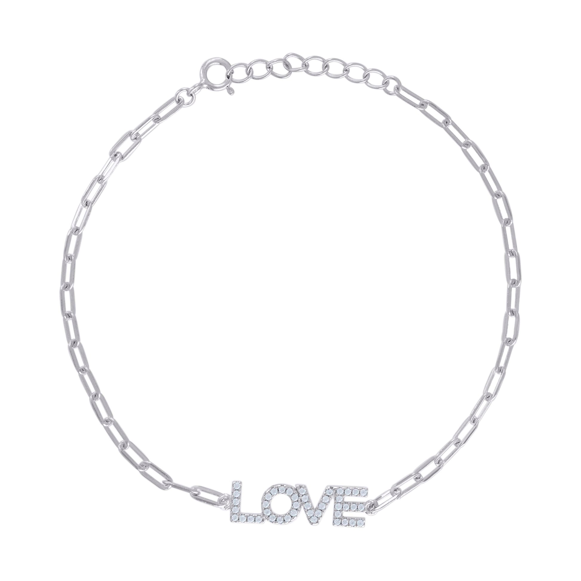925 Sterling Silver Womens Cubic-Zirconia LOVE Charm Bracelet Size 7 + 1 Inches