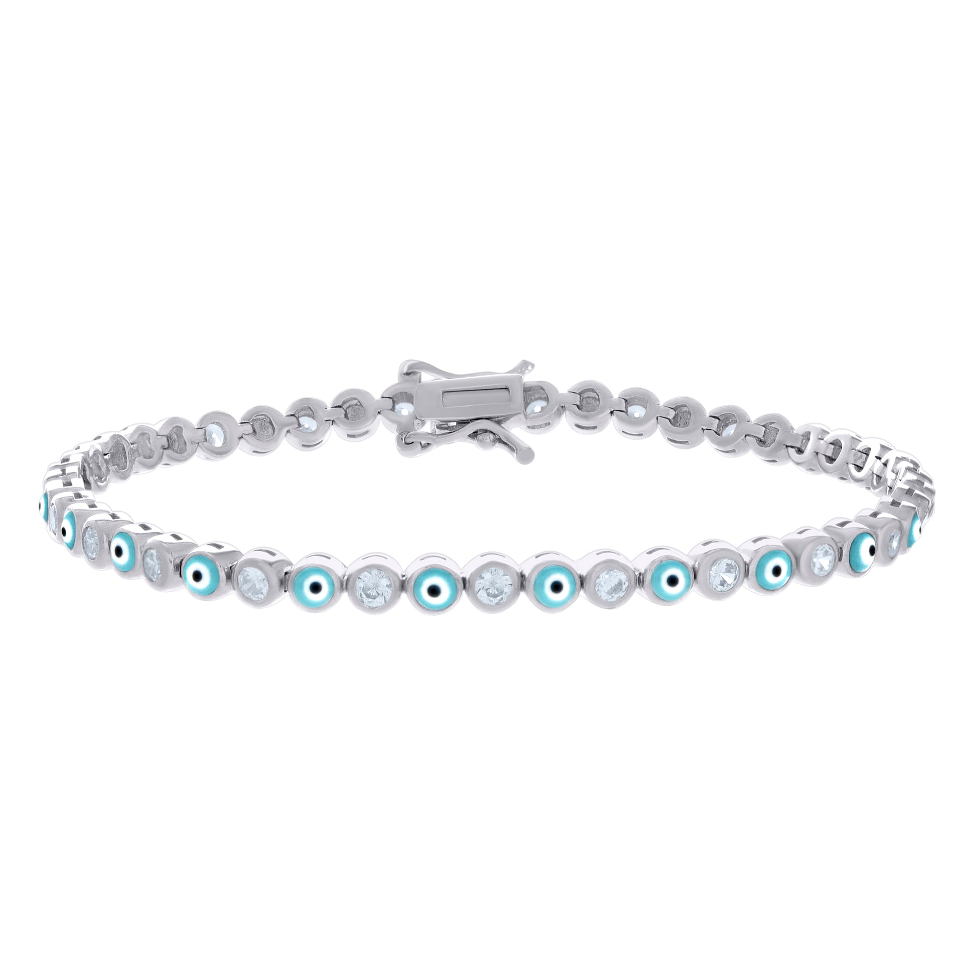 925 Sterling Silver Womens Cubic-Zirconia Evil Eye Good Luck Fashion Link Bracelet 7.25
