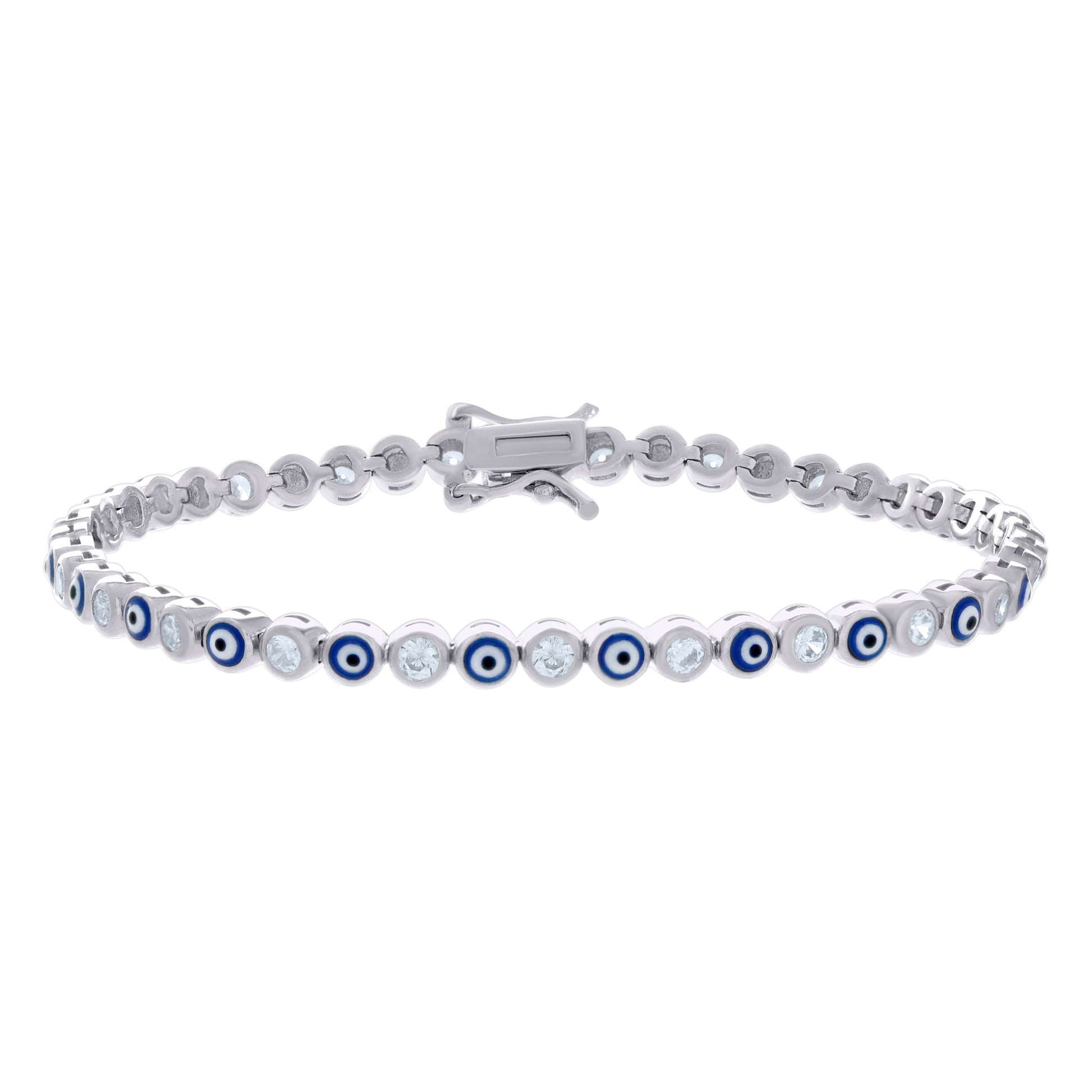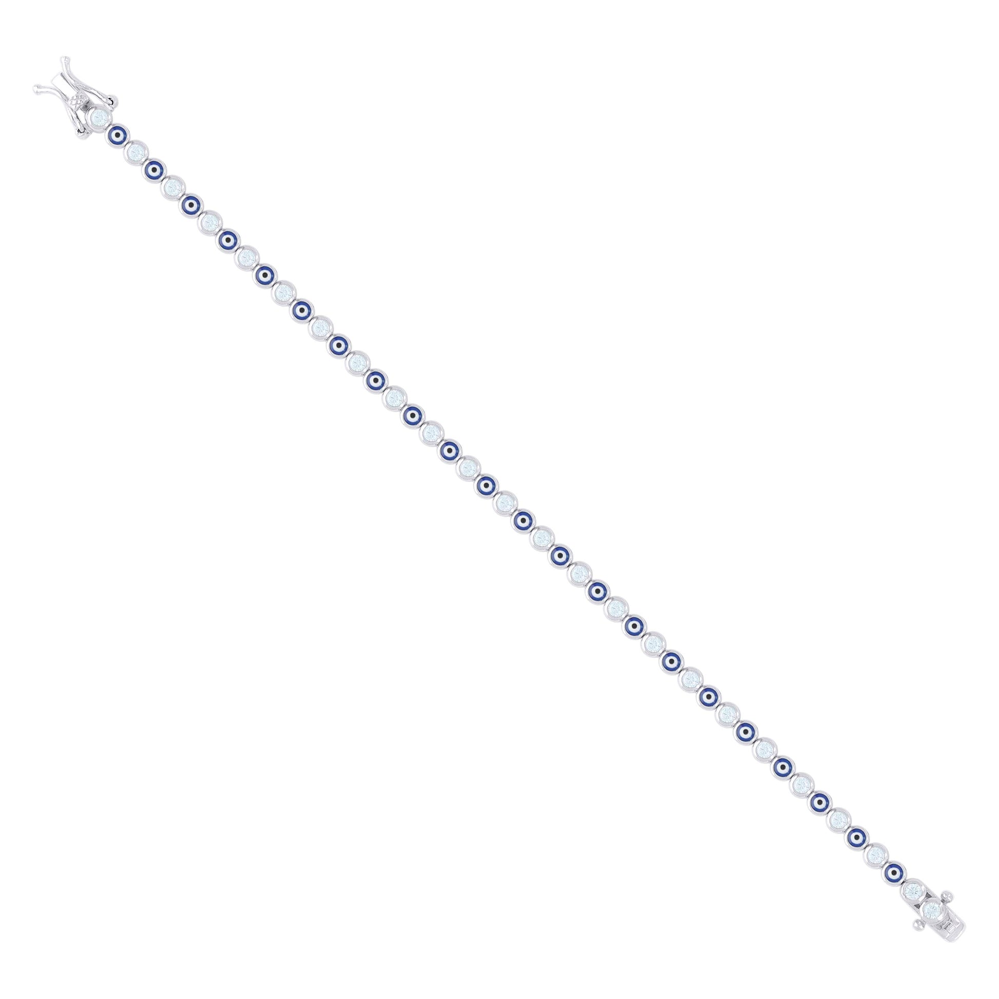 925 Sterling Silver Womens Cubic-Zirconia Evil Eye Good Luck Fashion Link Bracelet 7.25