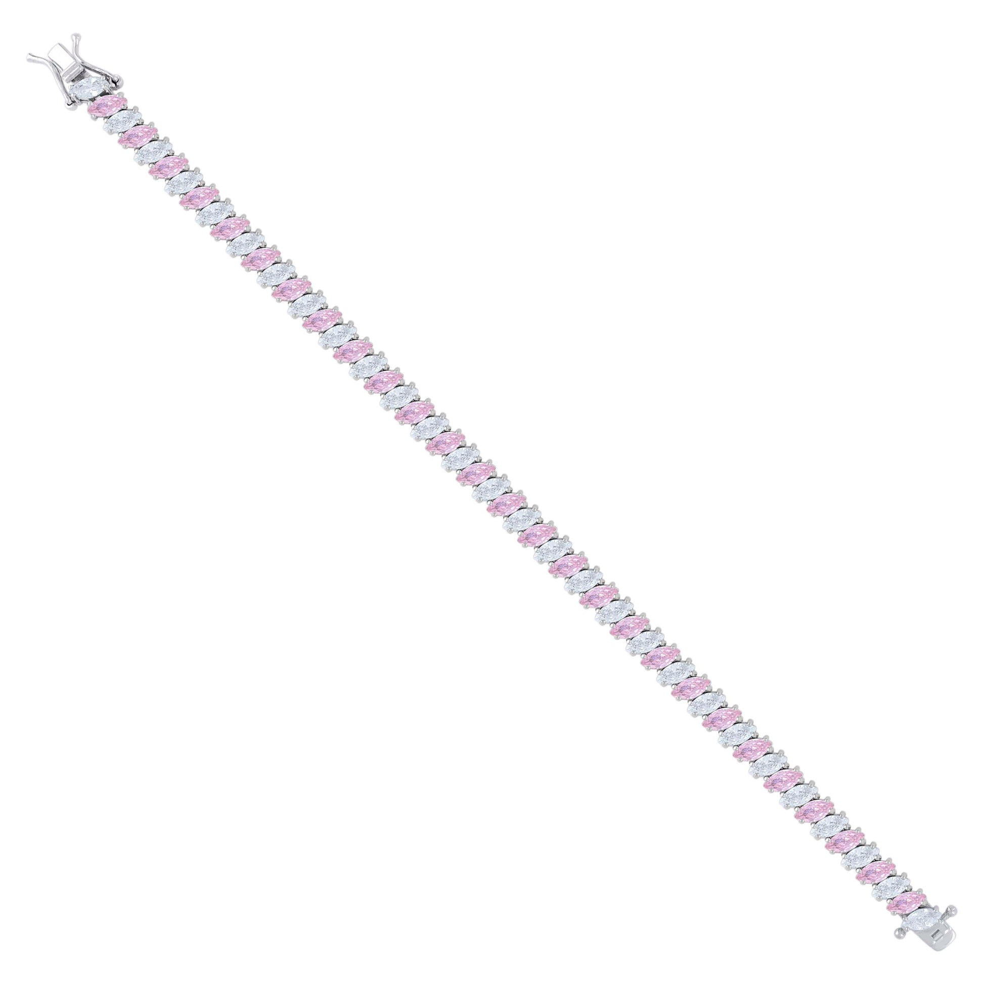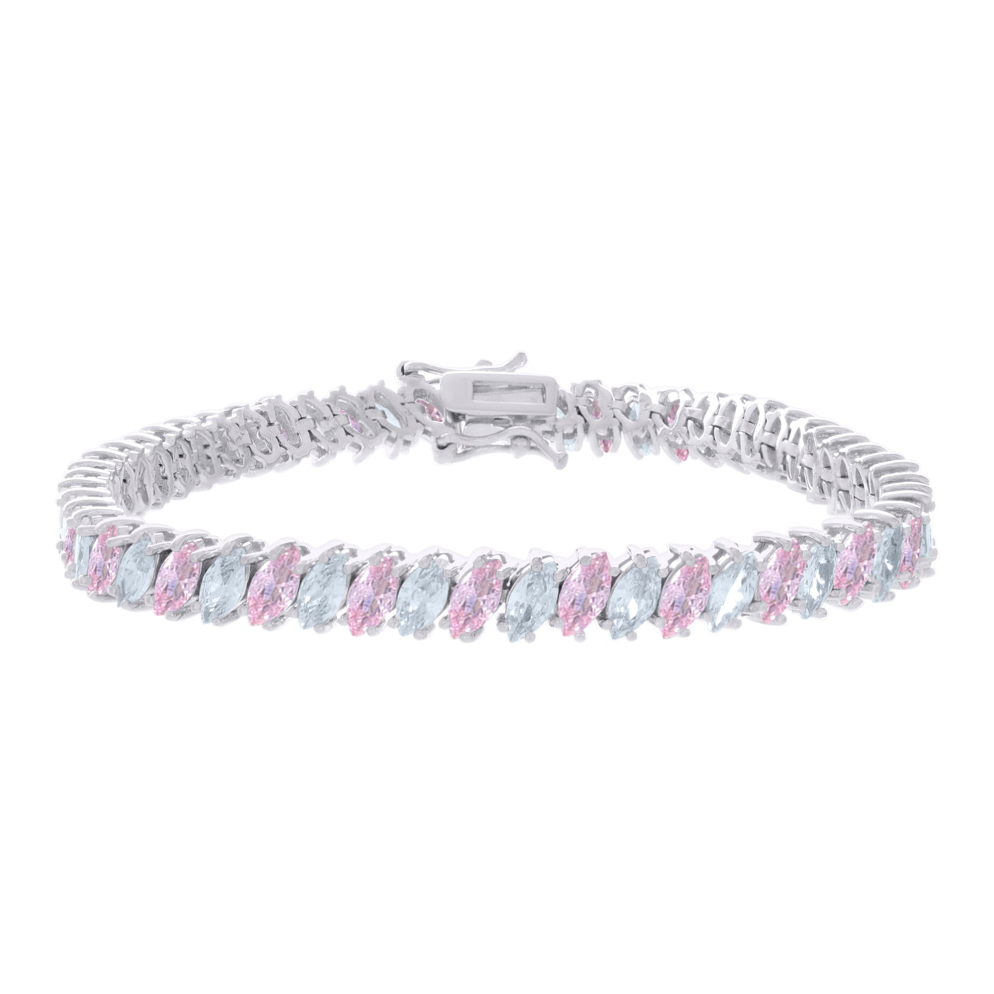 925 Sterling Silver Womens Light Pink White Marquise Cubic-Zirconia Fashion Link Bracelet 7.25