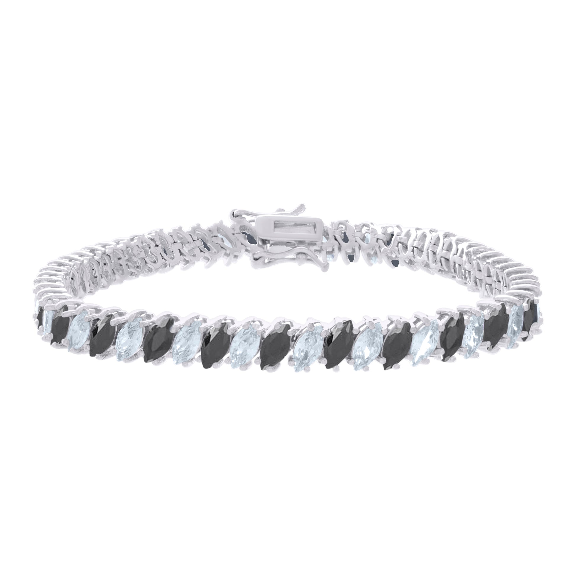 925 Sterling Silver Womens Black White Marquise Cubic-Zirconia Fashion Link Bracelet 7.25
