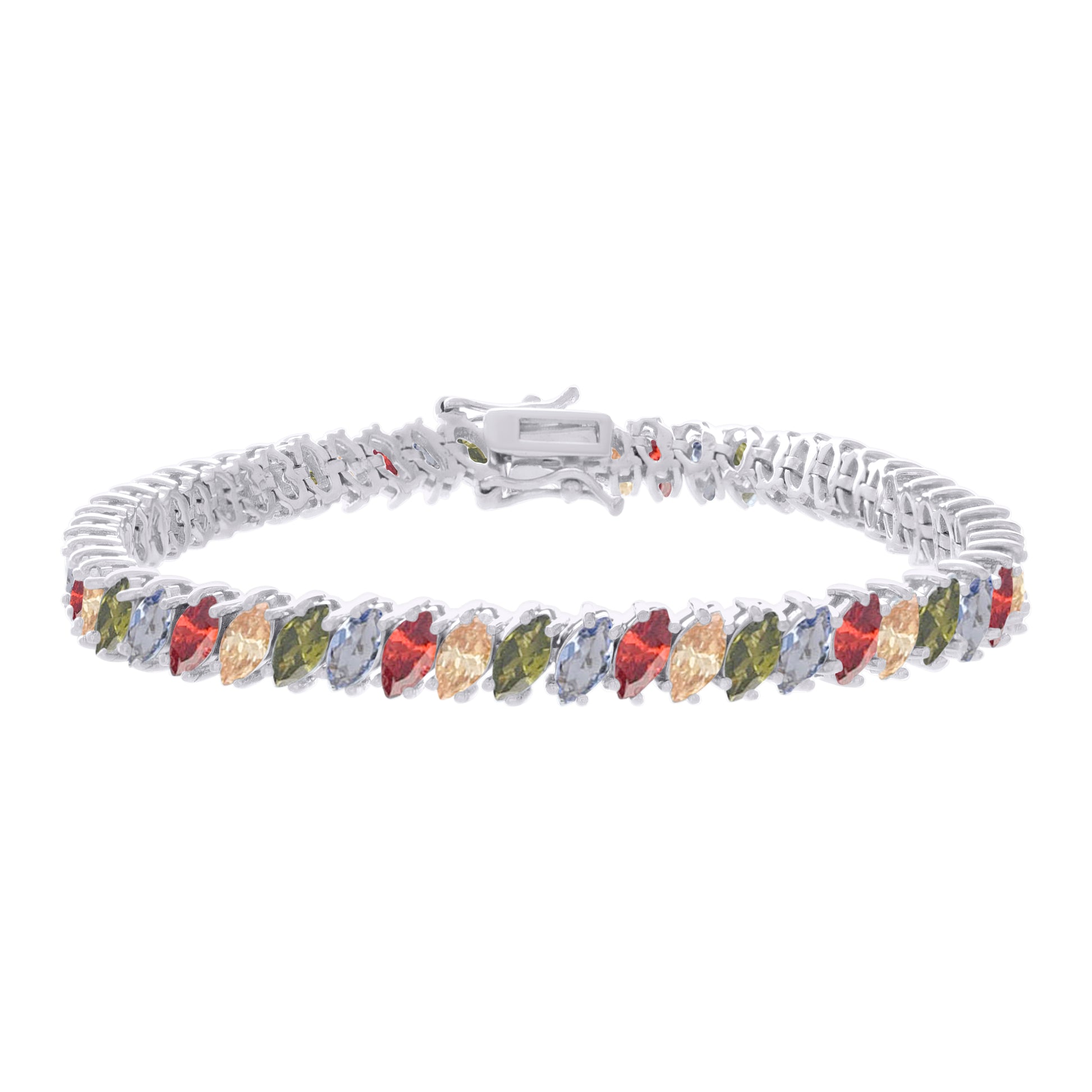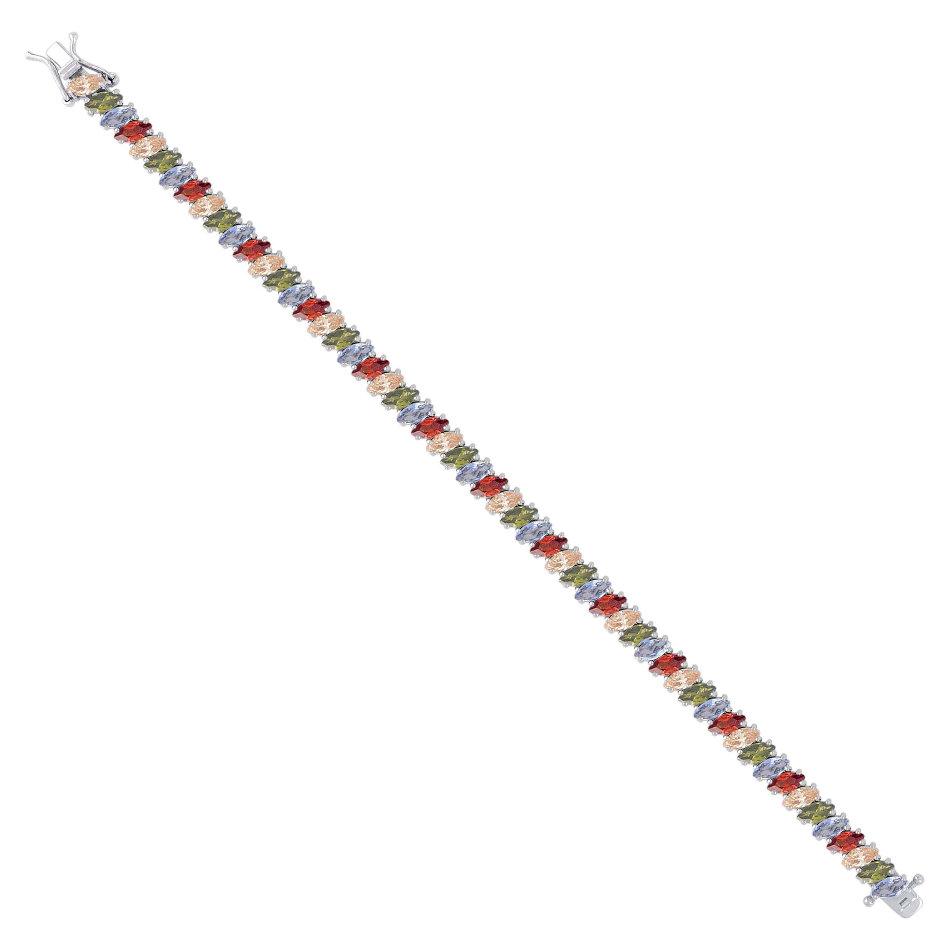 925 Sterling Silver Womens Multi-Color White Marquise Cubic-Zirconia Fashion Link Bracelet 7.25