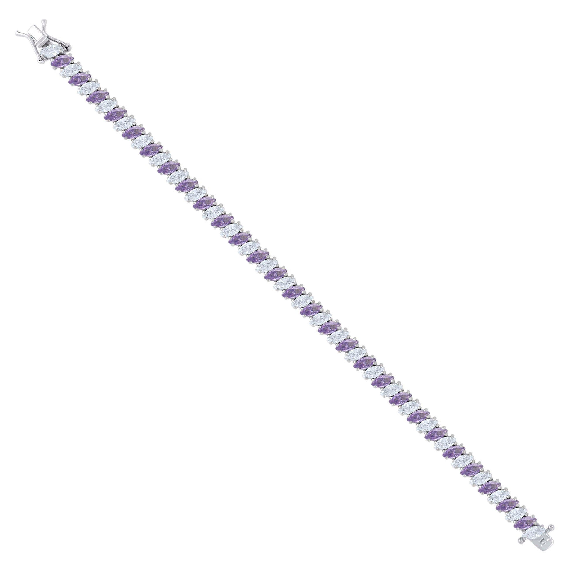 925 Sterling Silver Womens Purple White Marquise Cubic-Zirconia Fashion Link Bracelet 7.25