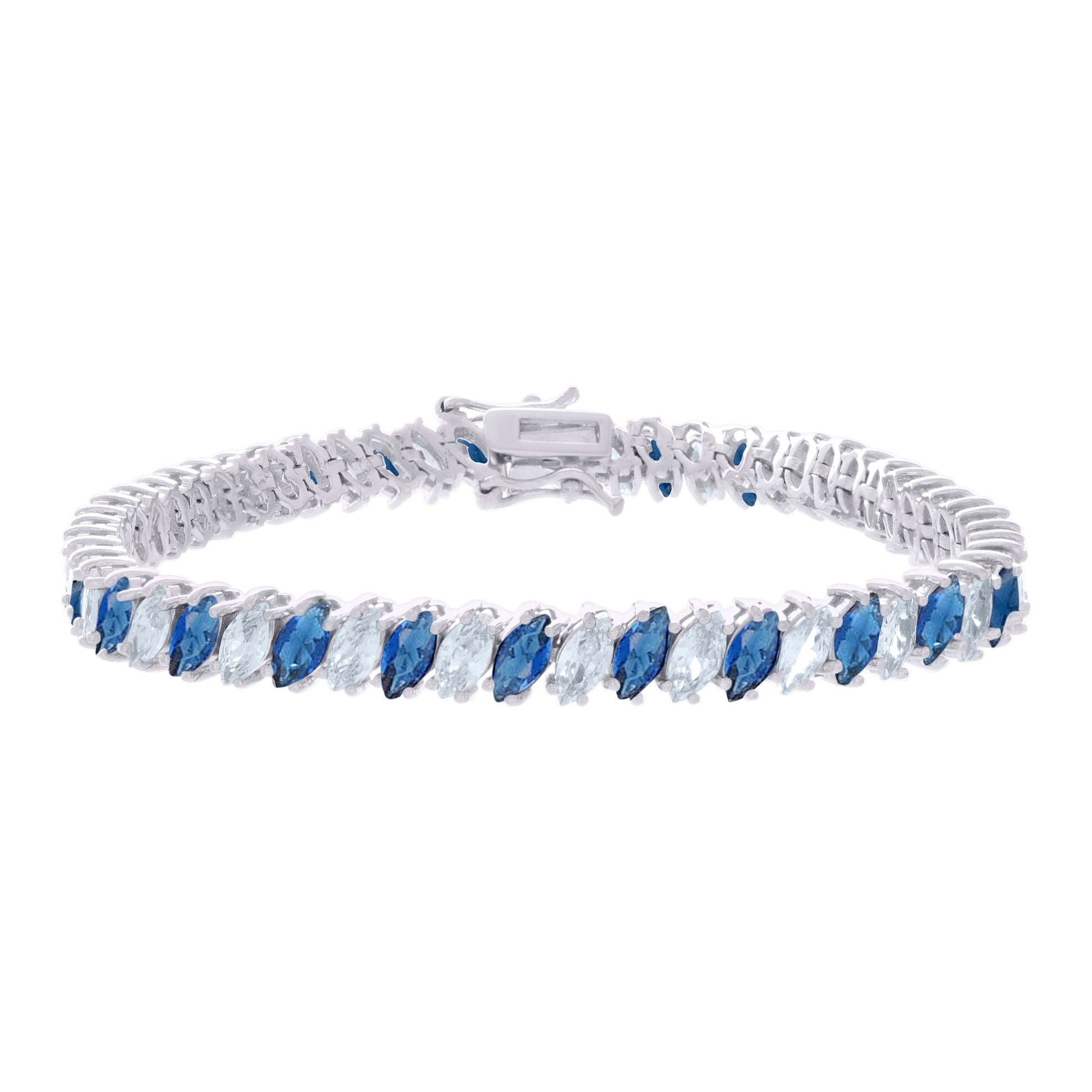 925 Sterling Silver Womens Blue White Marquise Cubic-Zirconia Fashion Link Bracelet 7.25
