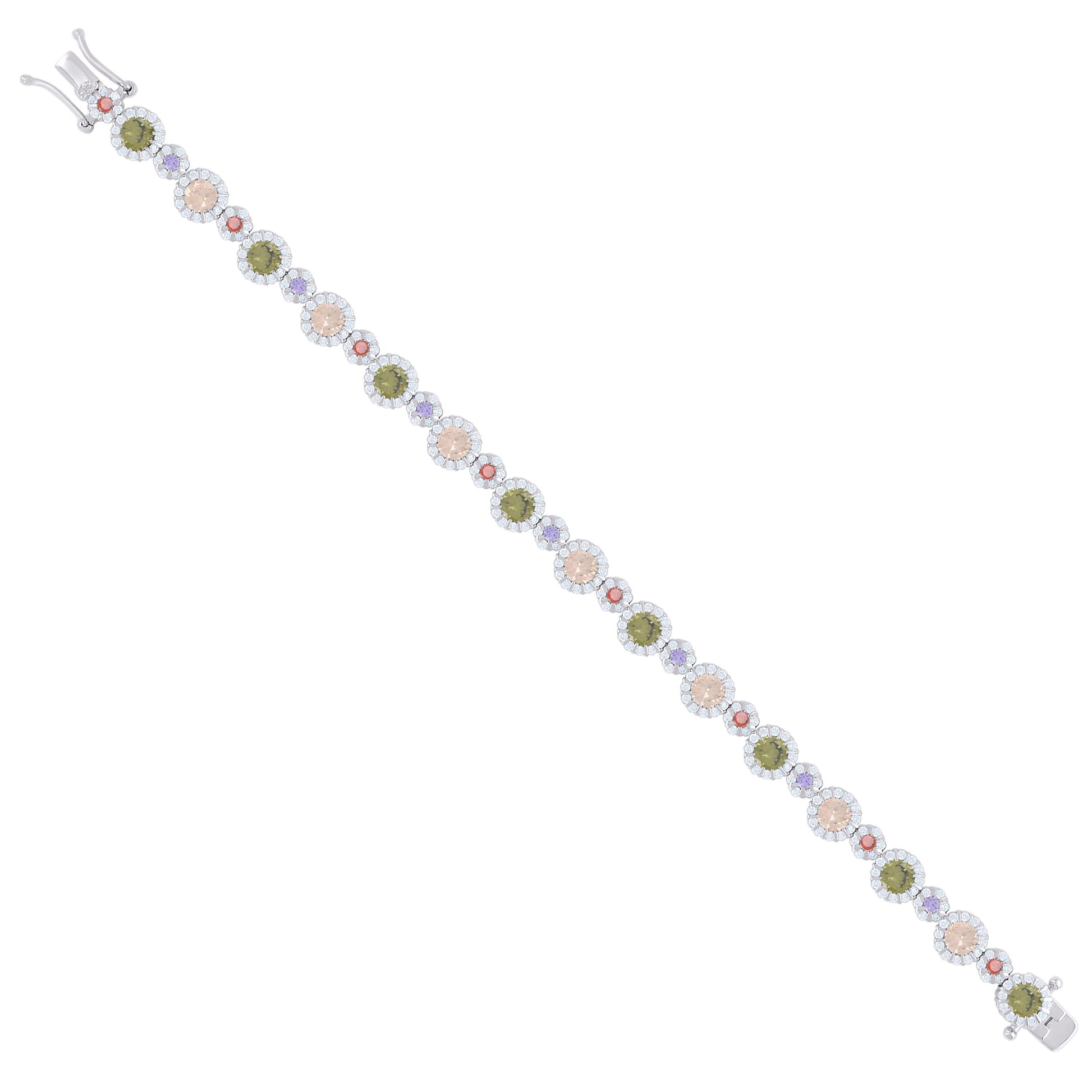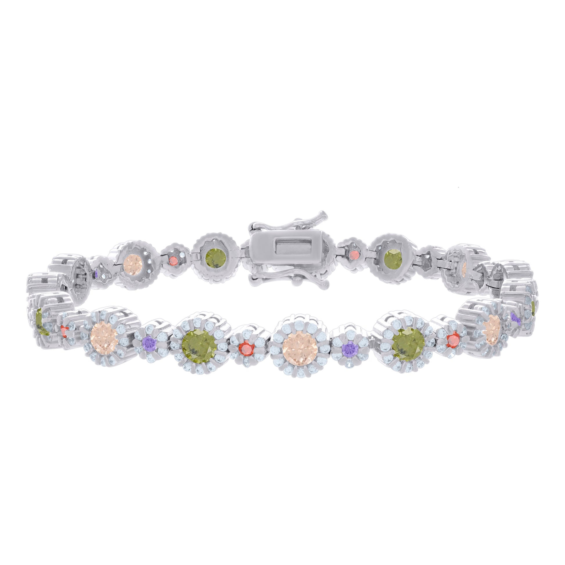 925 Sterling Silver Womens Multi-Color White Cubic-Zirconia Fashion Link Bracelet 7