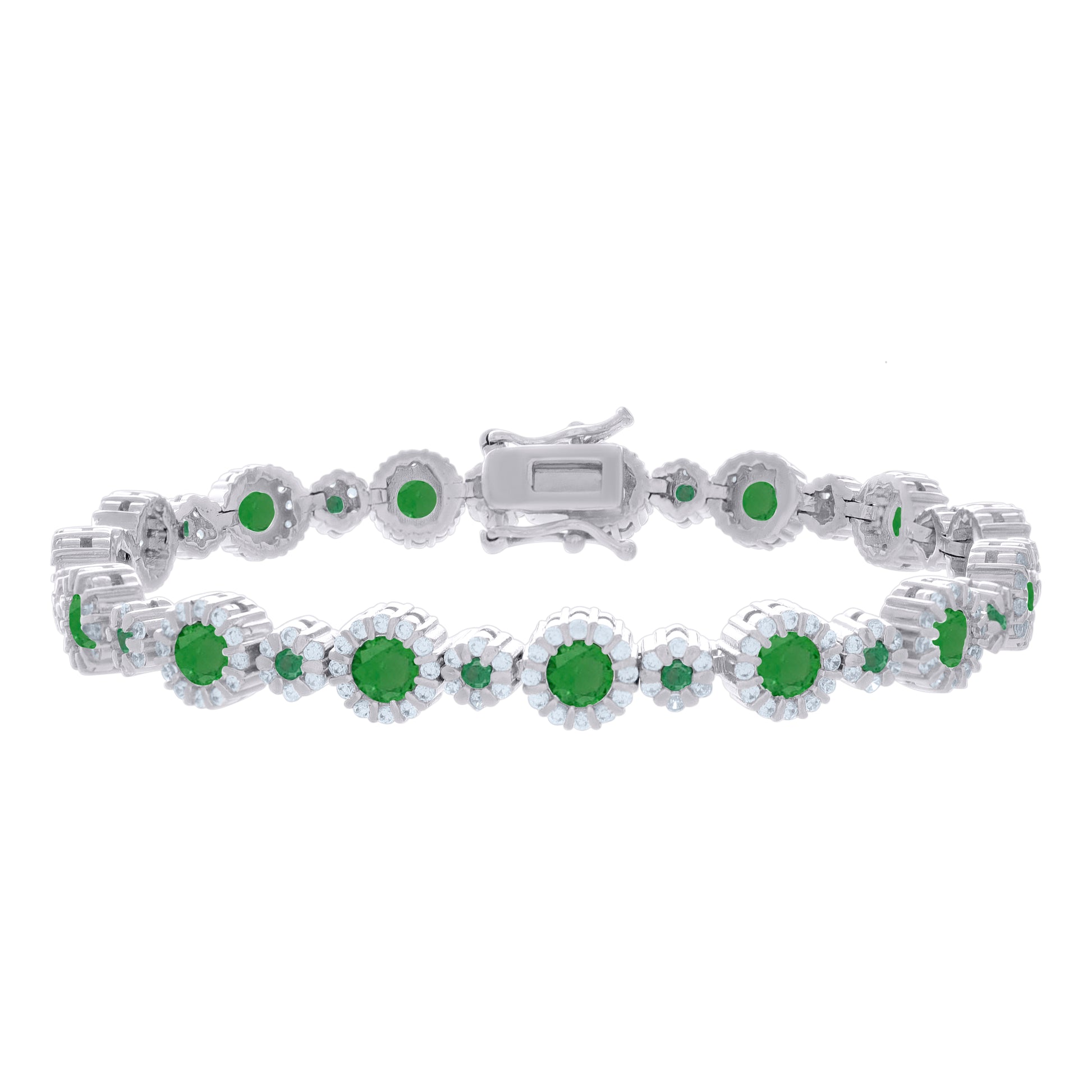 925 Sterling Silver Womens Green White Cubic-Zirconia Fashion Link Bracelet 7