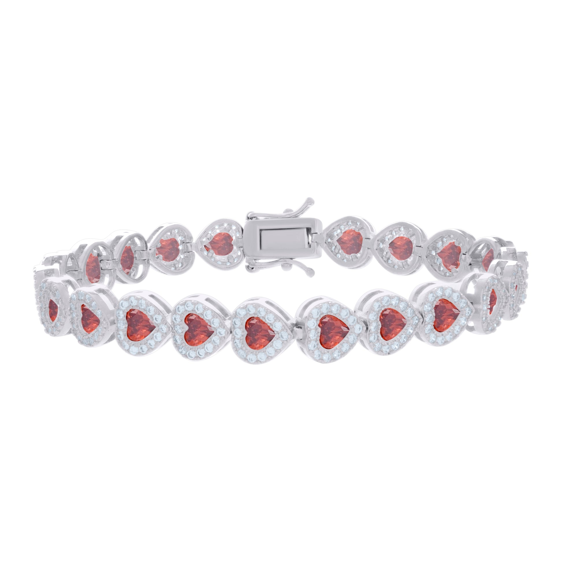925 Sterling Silver Womens Red White Heart Round Cubic-Zirconia Heart Fashion Link Bracelet 7.25