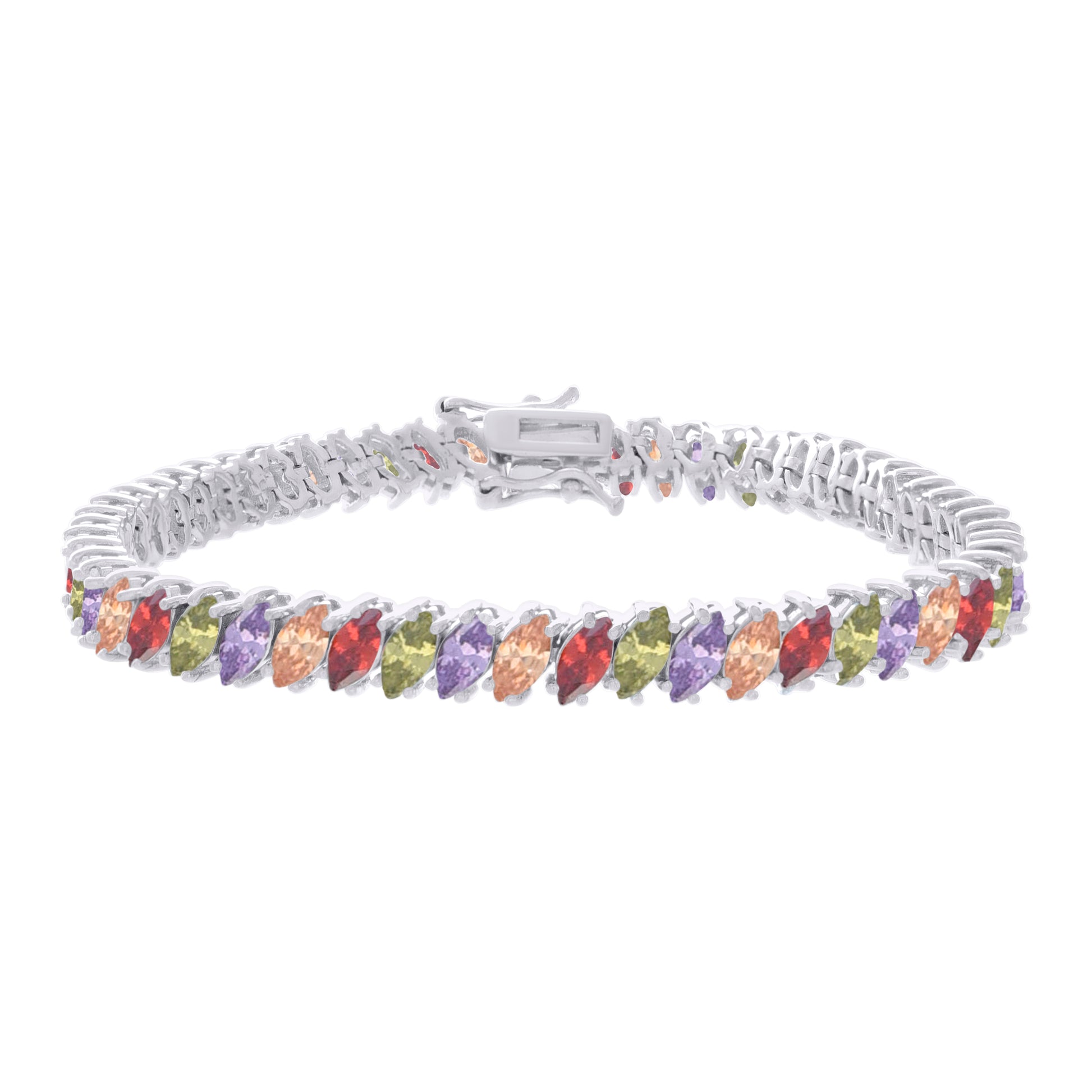 925 Sterling Silver Womens Multi-Color White Marquise Cubic-Zirconia Fashion Link Bracelet 7