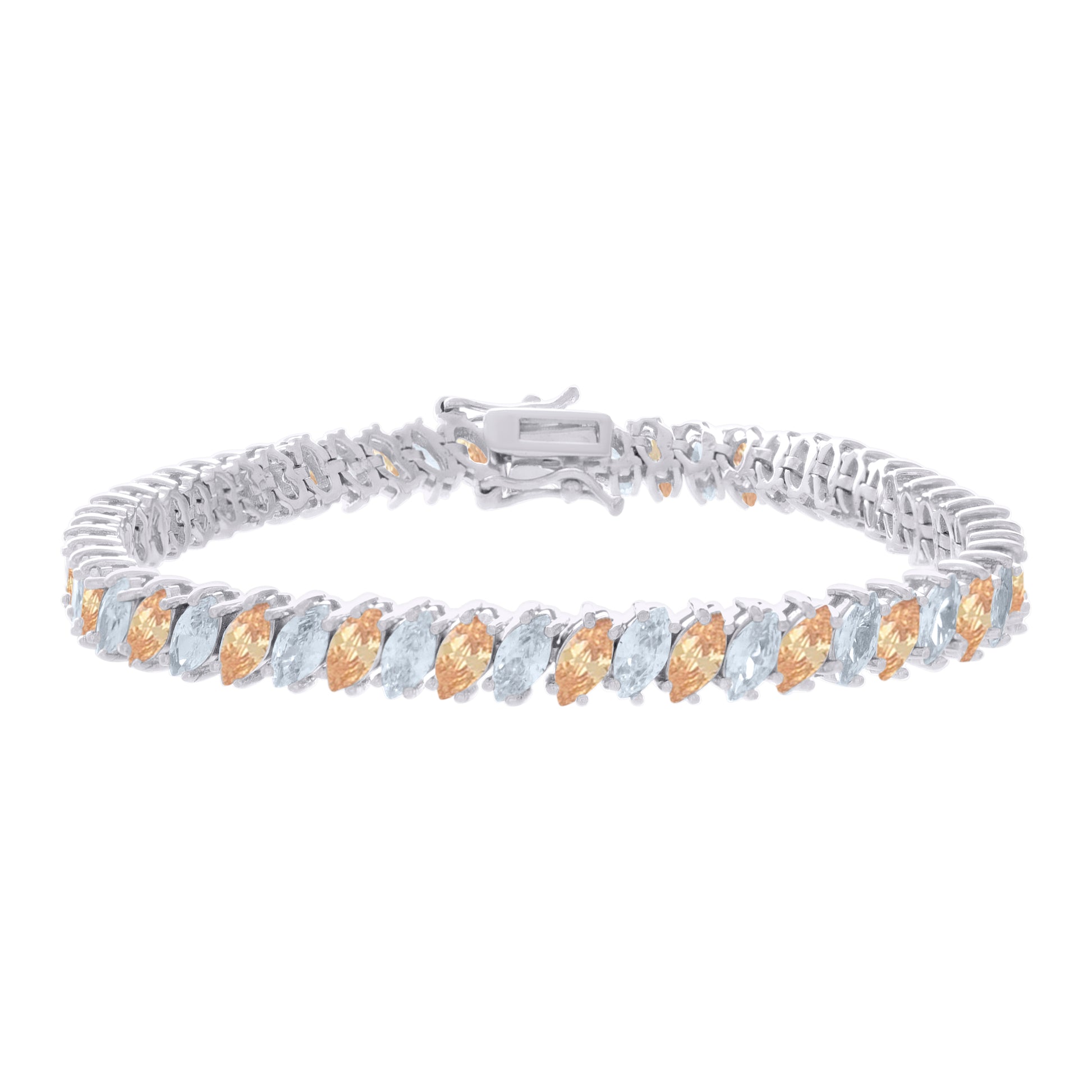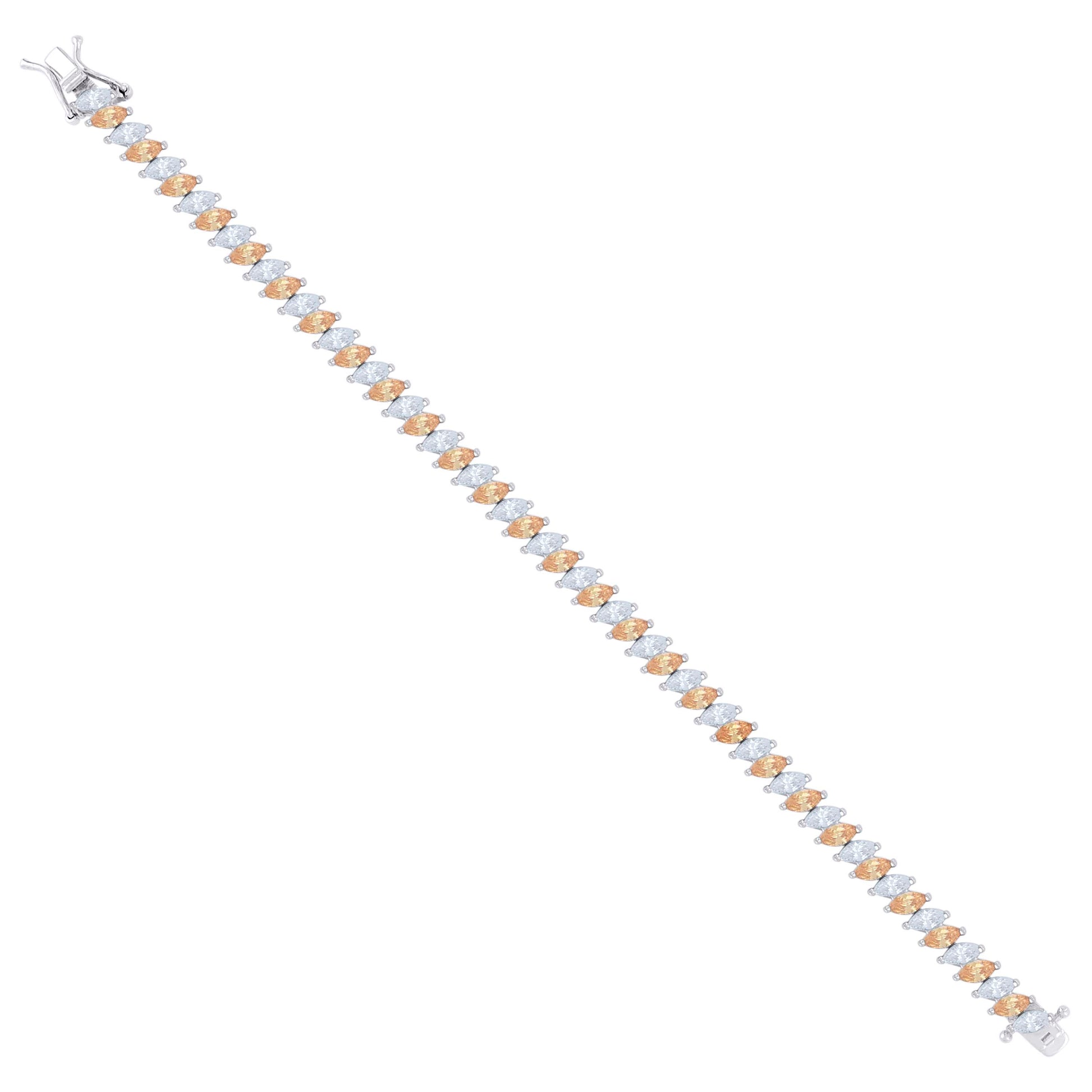 925 Sterling Silver Womens Orange White Marquise Cubic-Zirconia Fashion Link Bracelet 7