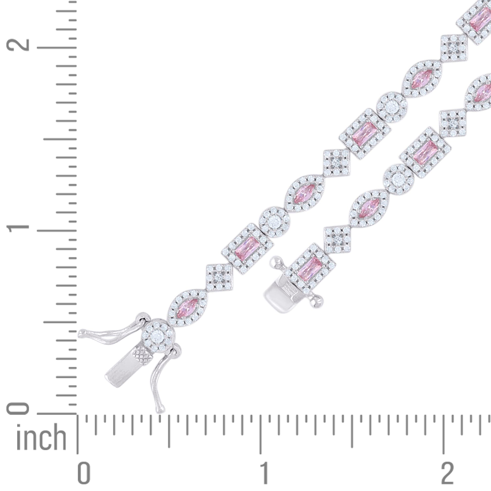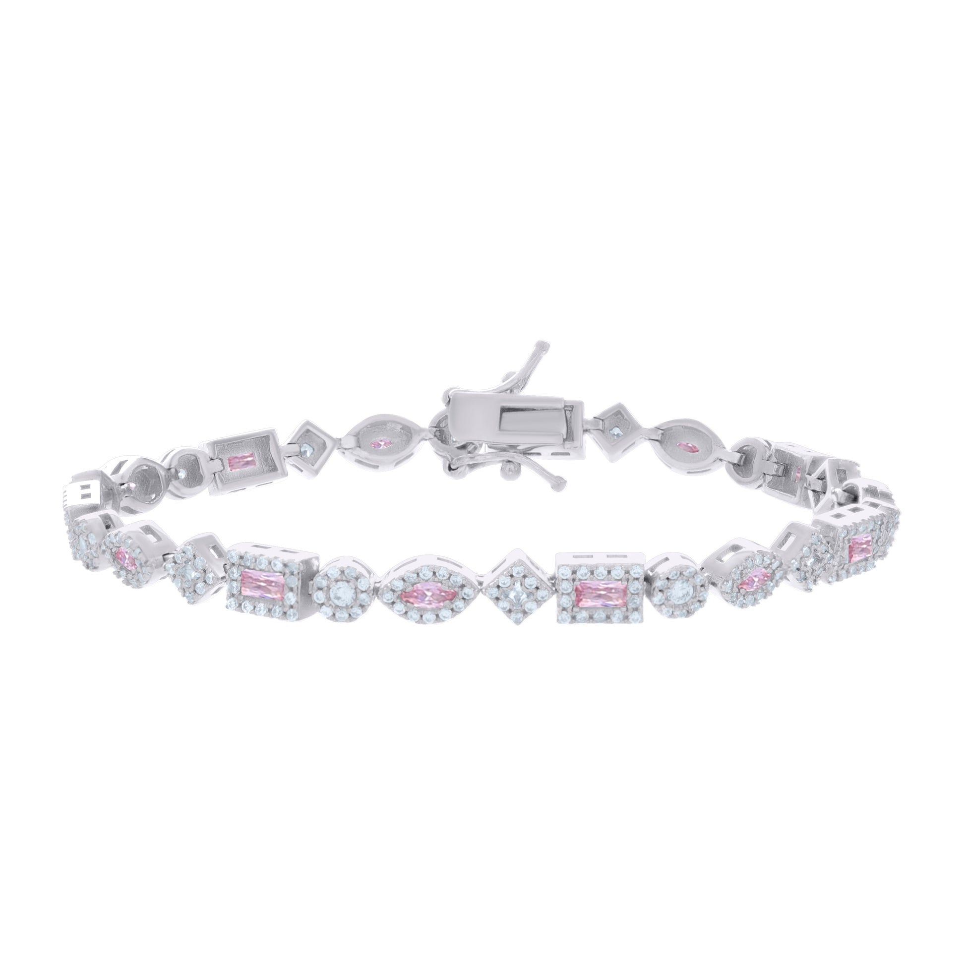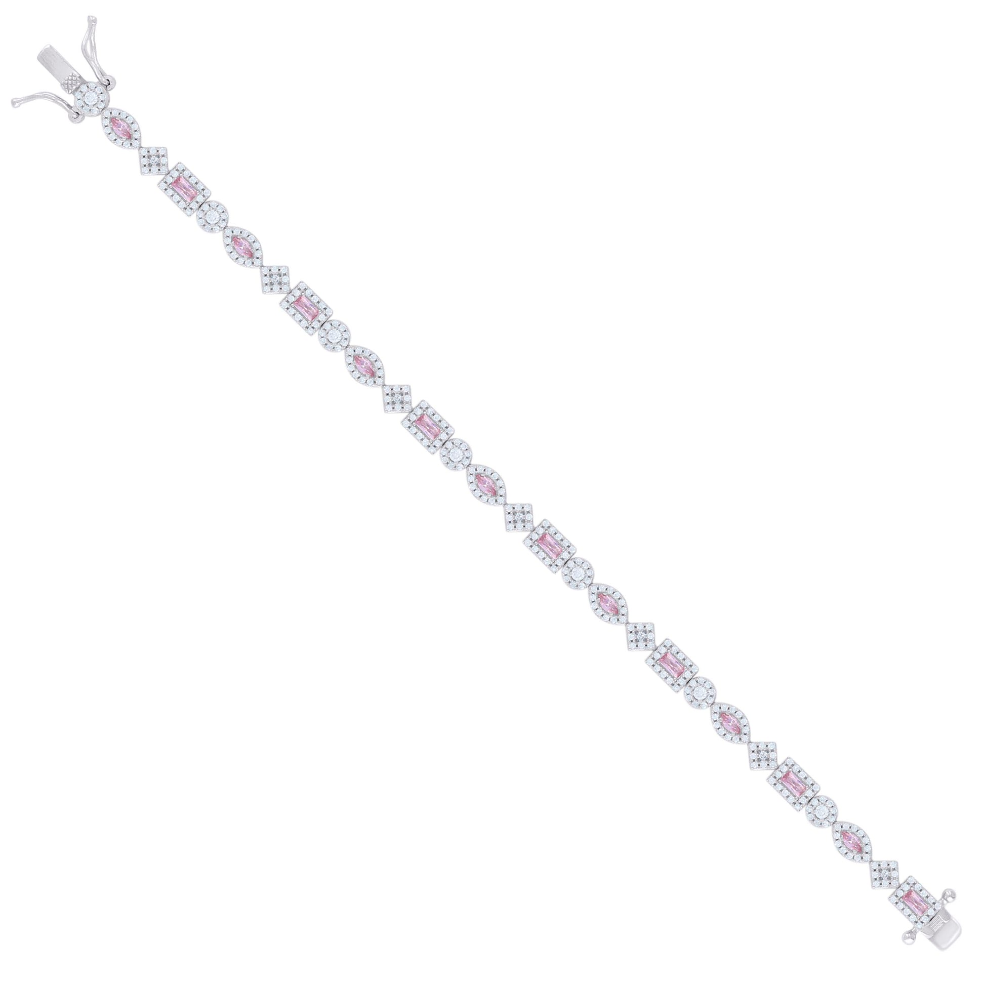 925 Sterling Silver Womens Light Pink White Baguette/Marquise Round Cubic-Zirconia Fashion Link Bracelet 7