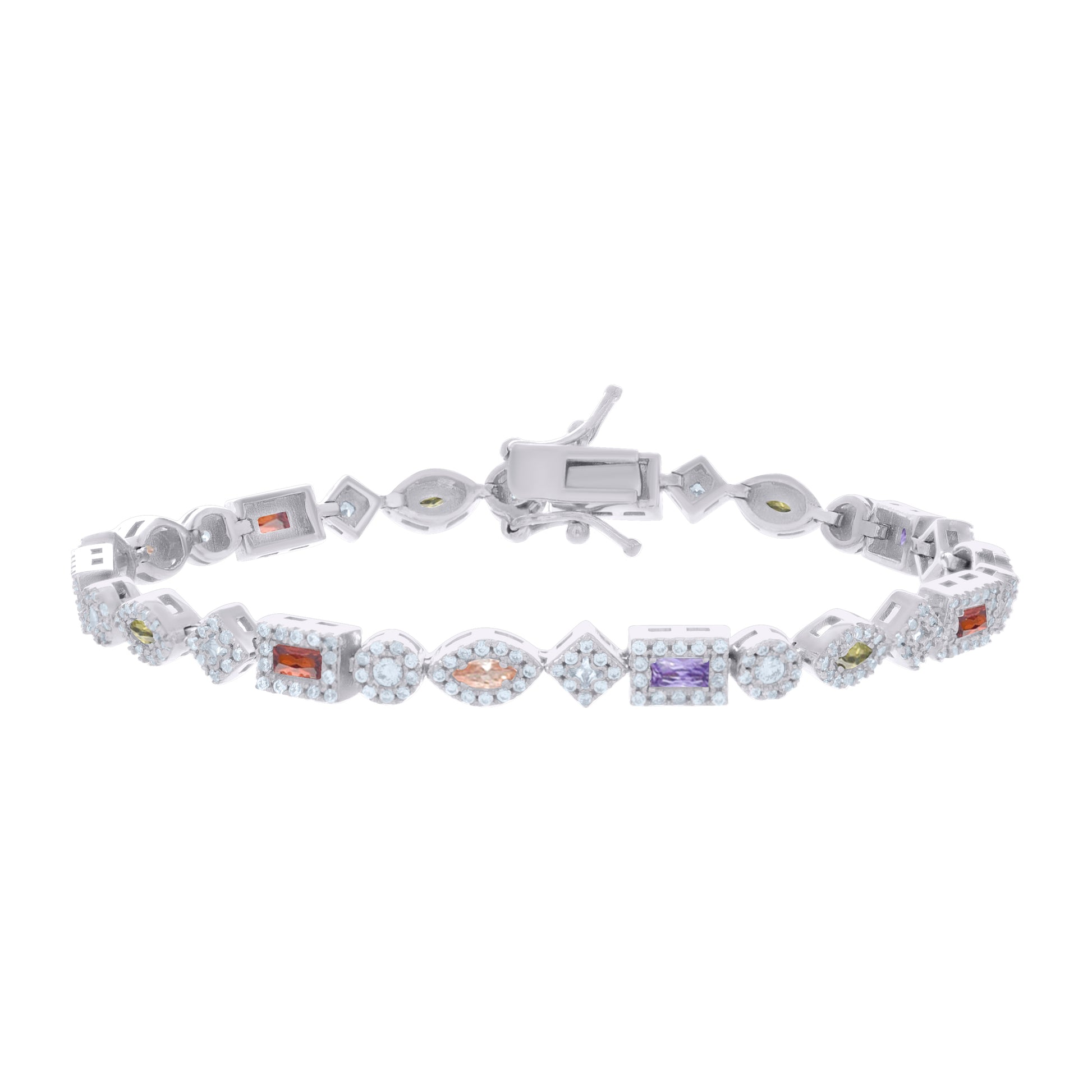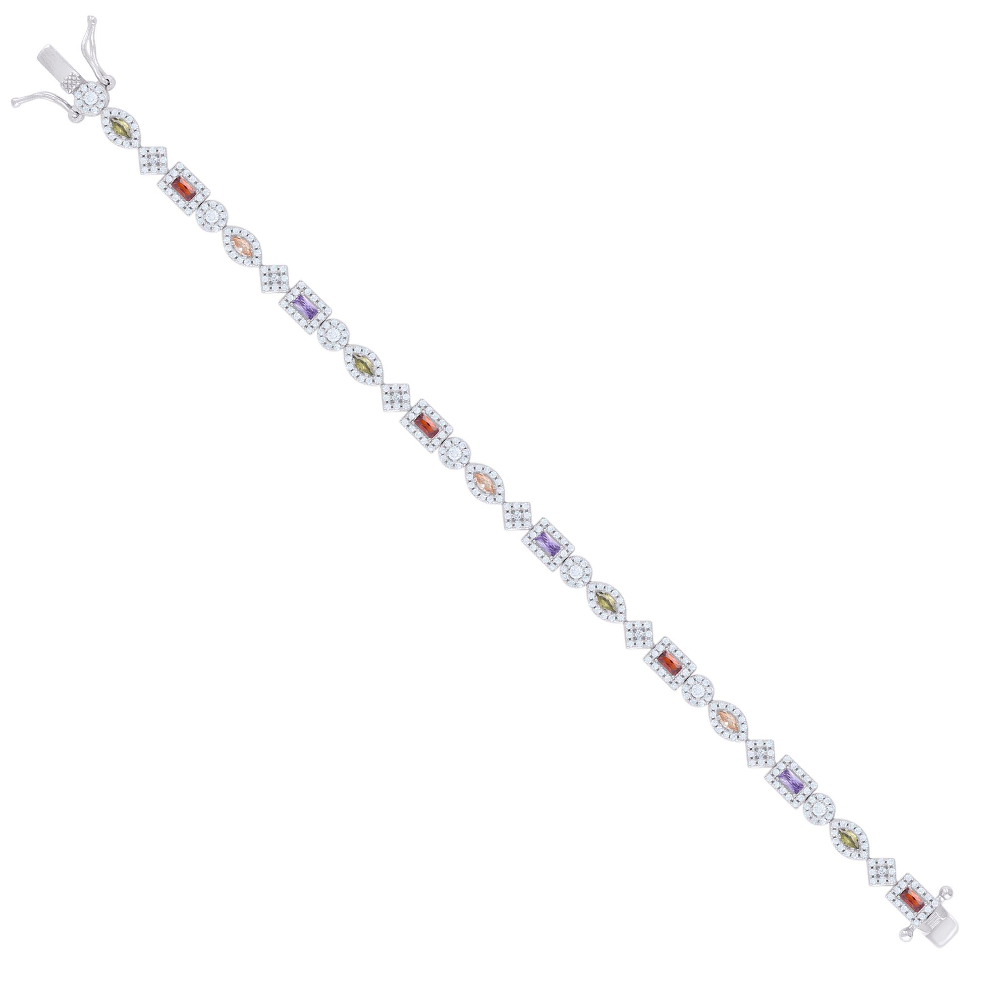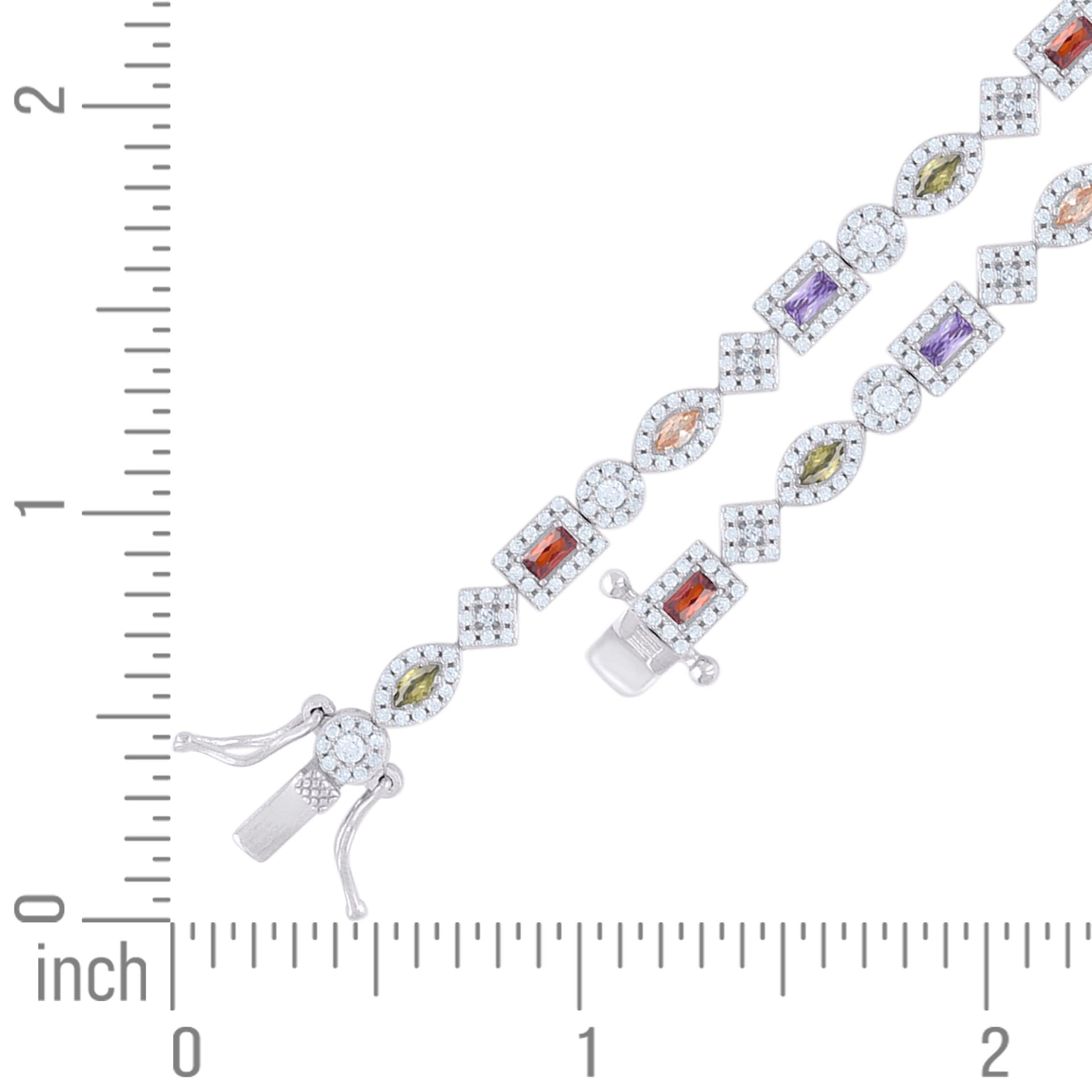 925 Sterling Silver Womens Multi-Color White Baguette/Marquise Round Cubic-Zirconia Fashion Link Bracelet 7.25