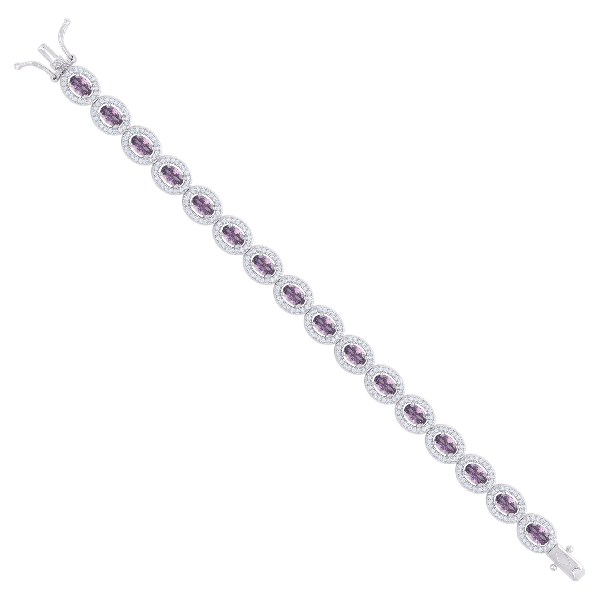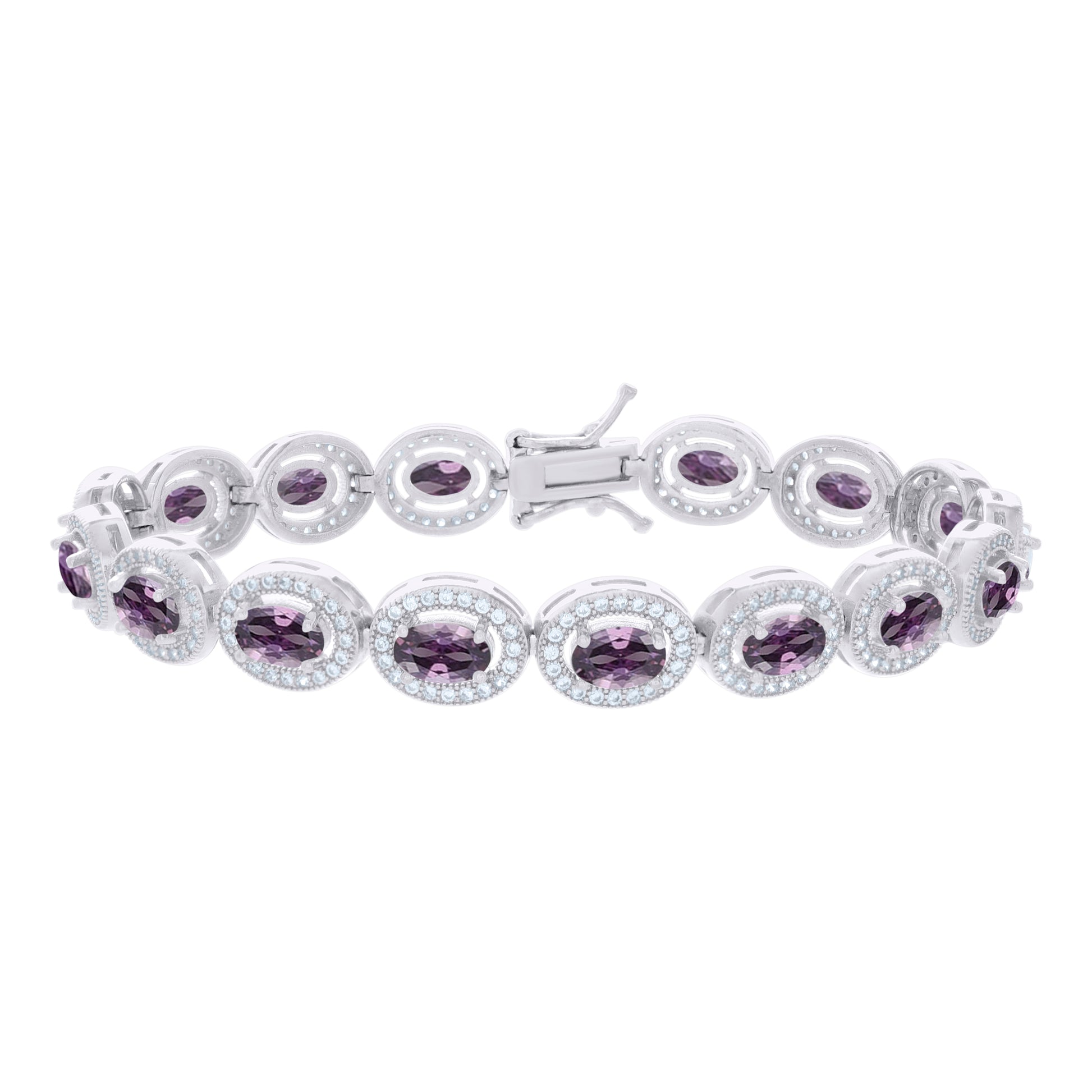 925 Sterling Silver Womens Purple White Oval Round Cubic-Zirconia Oval Fashion Link Bracelet 7