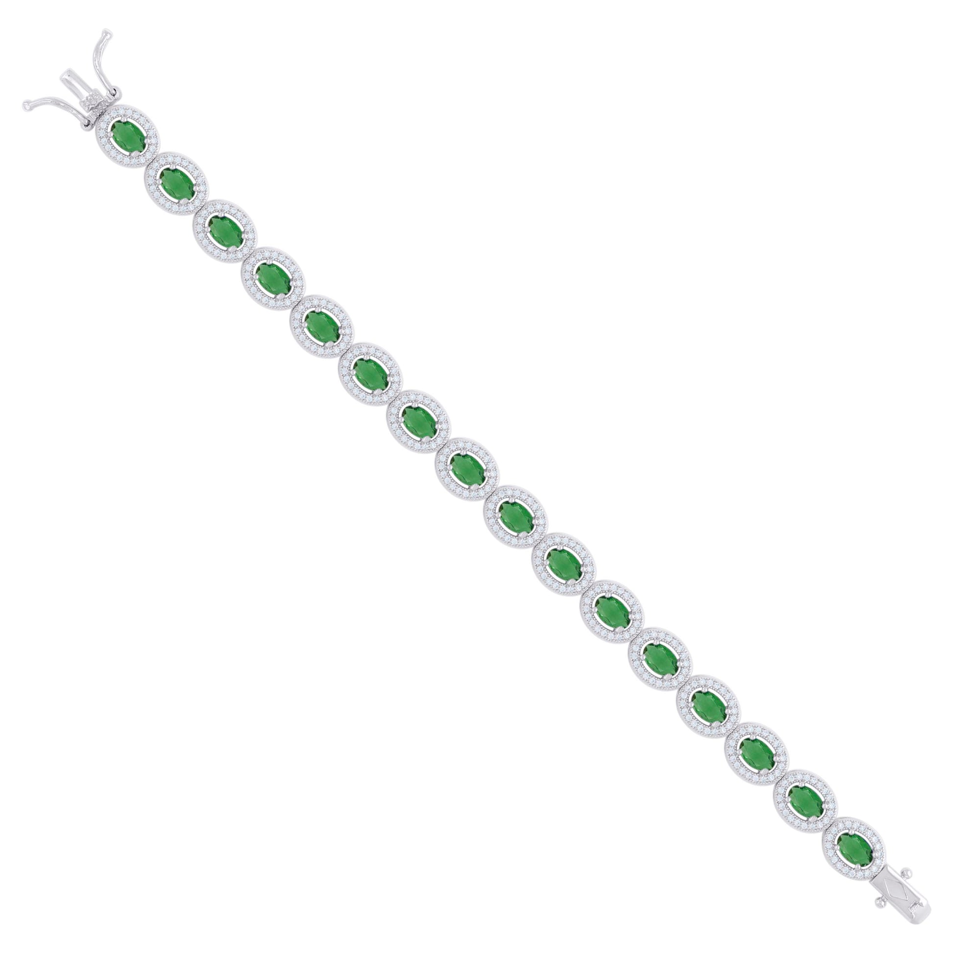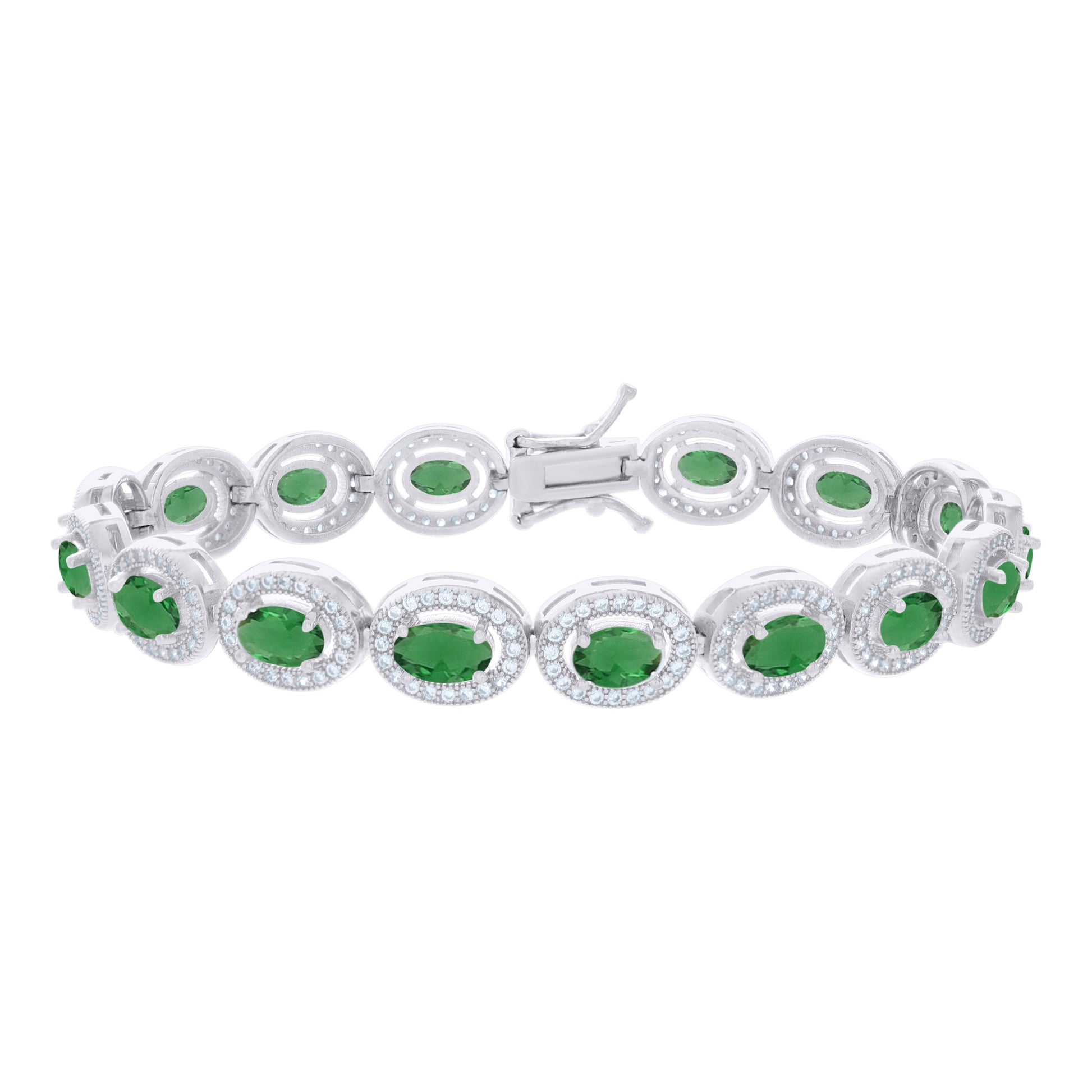 925 Sterling Silver Womens Green White Oval Round Cubic-Zirconia Oval Fashion Link Bracelet 7