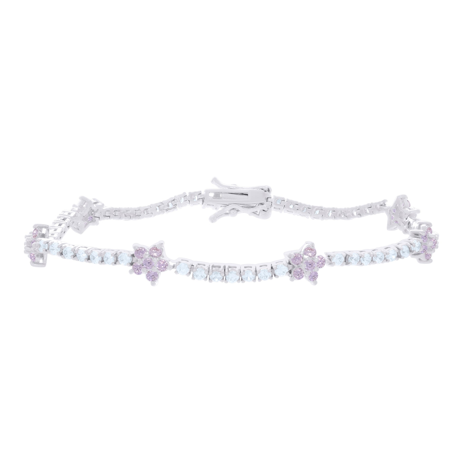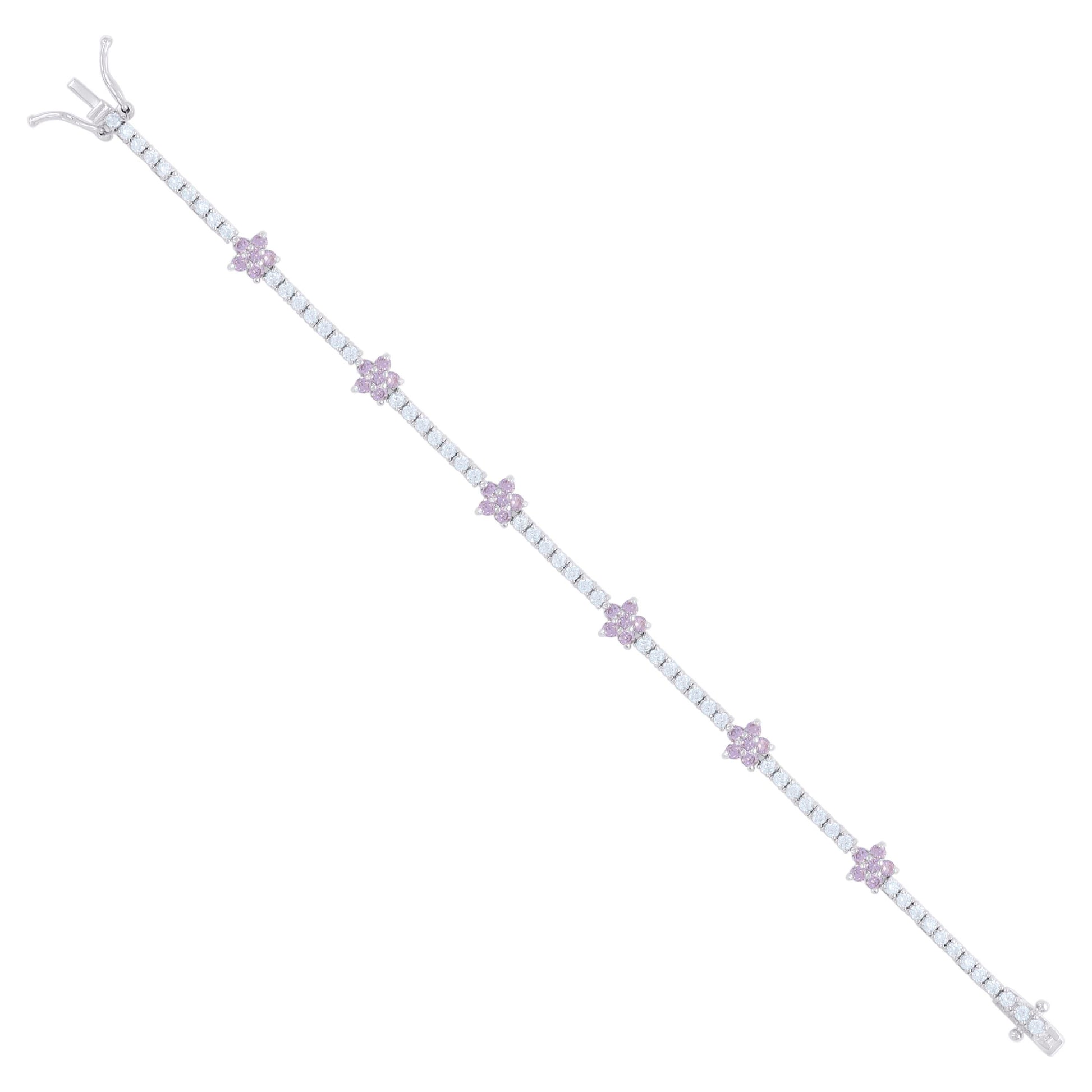 925 Sterling Silver Womens Light Pink White Cubic-Zirconia Flower Fashion Link Bracelet 7.25