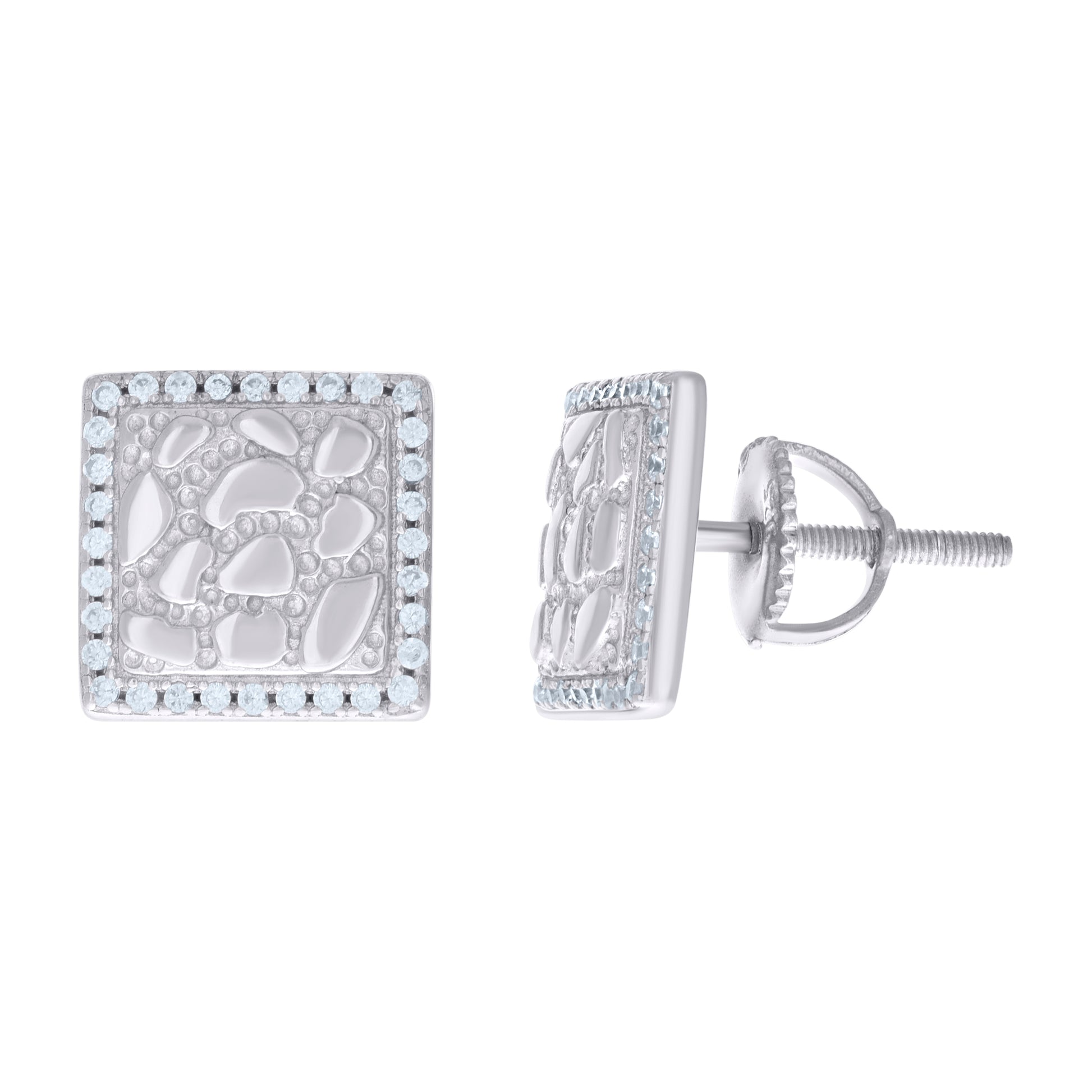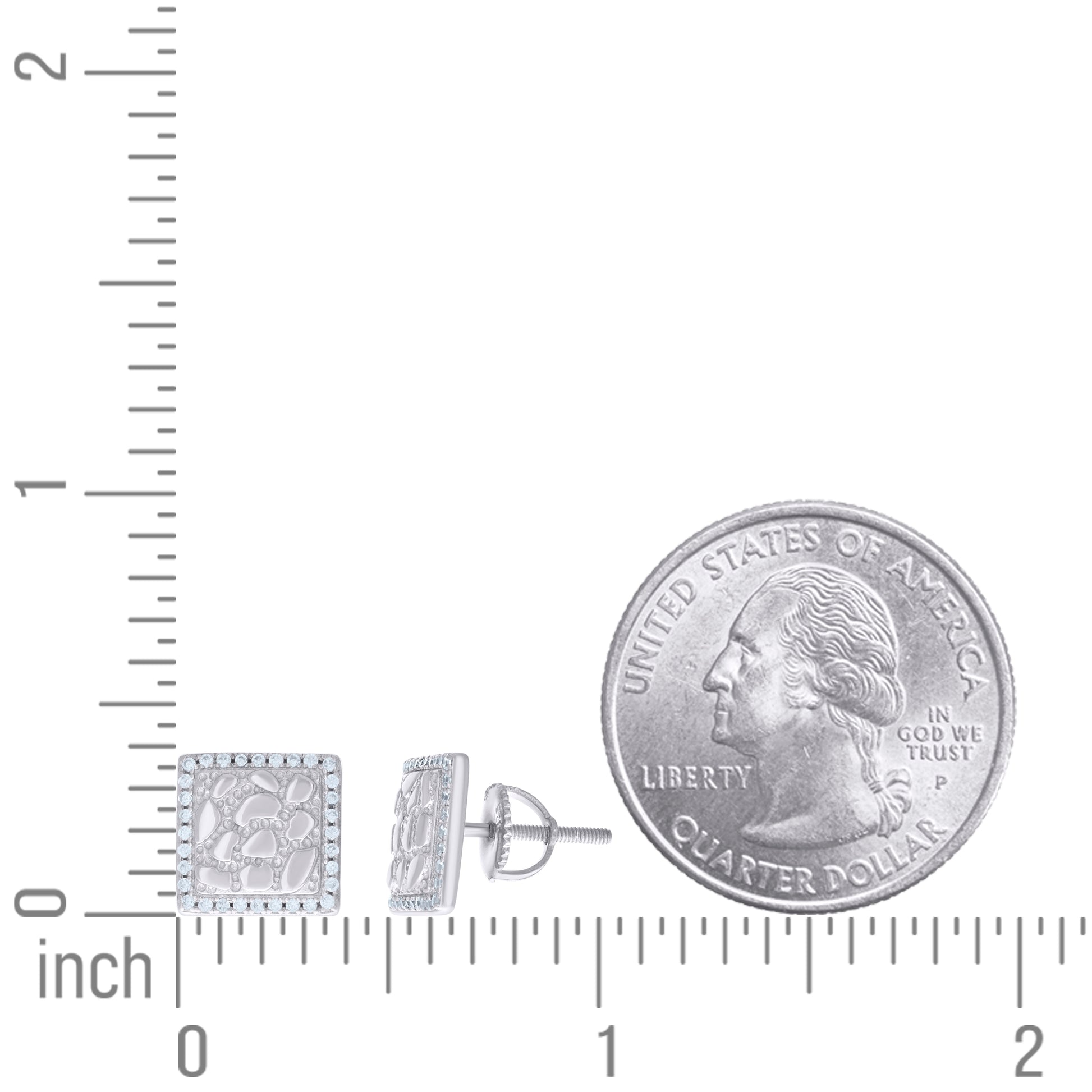 925 Sterling Silver Womens Cubic-Zirconia Nugget Square Stud Earrings