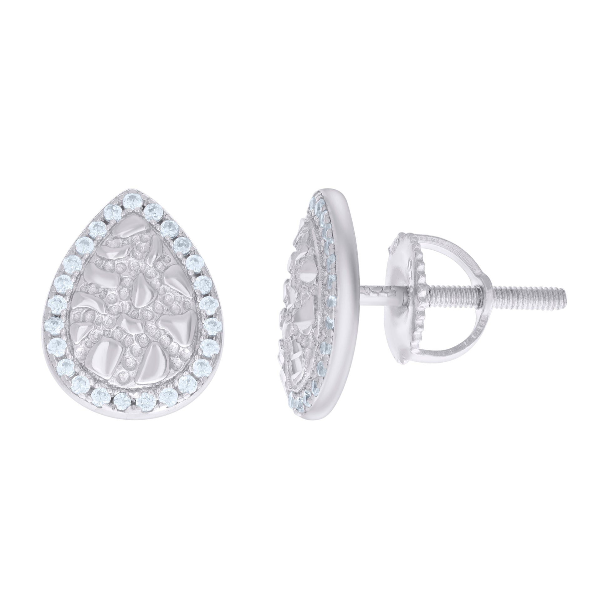925 Sterling Silver Womens Cubic-Zirconia Nugget Teardrop Stud Earrings