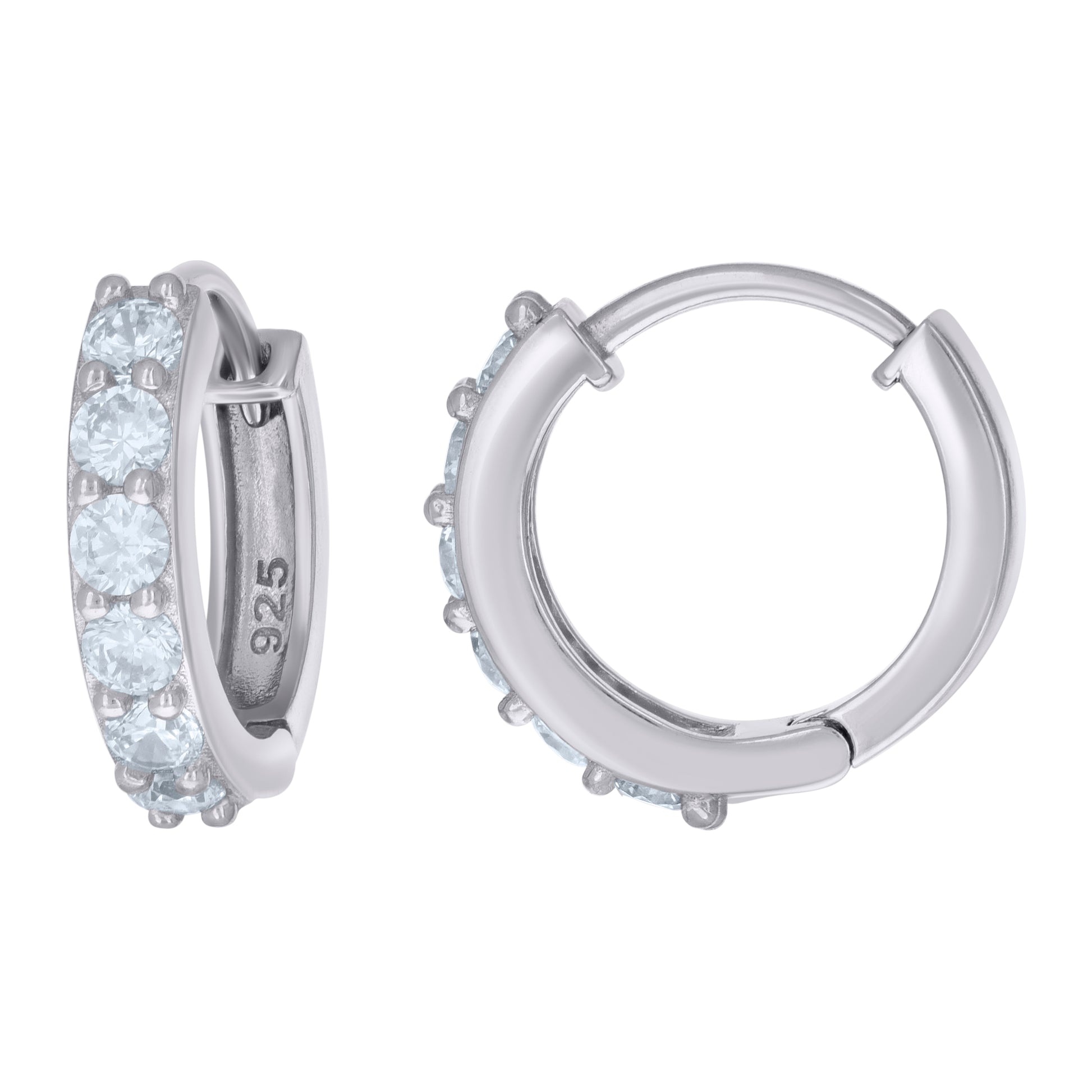 925 Sterling Silver Womens Cubic-Zirconia Fashion Hoop Huggies Earrings