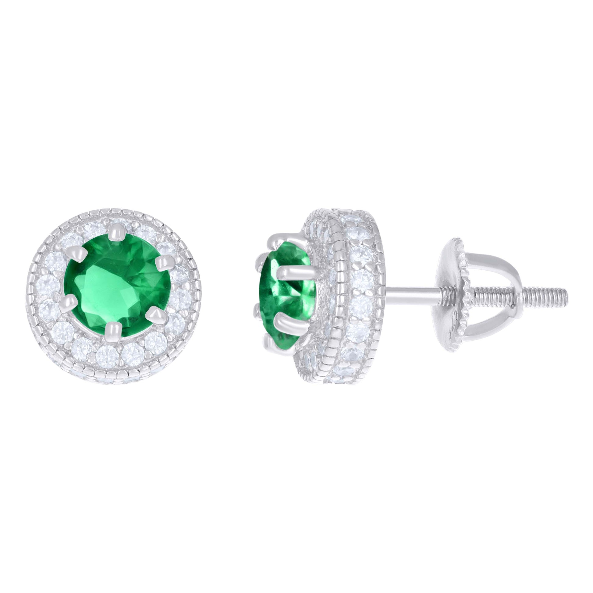 925 Sterling Silver Womens Green White Cubic-Zirconia Fashion Stud Earrings