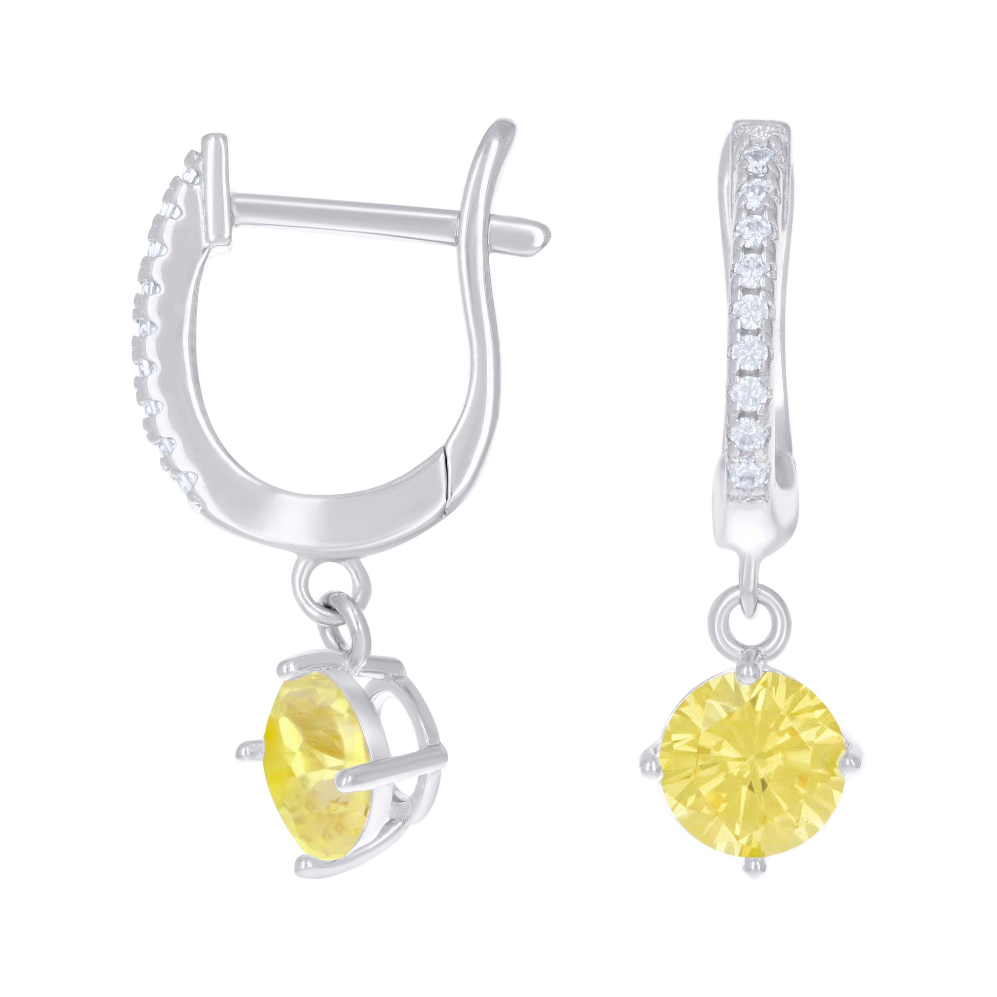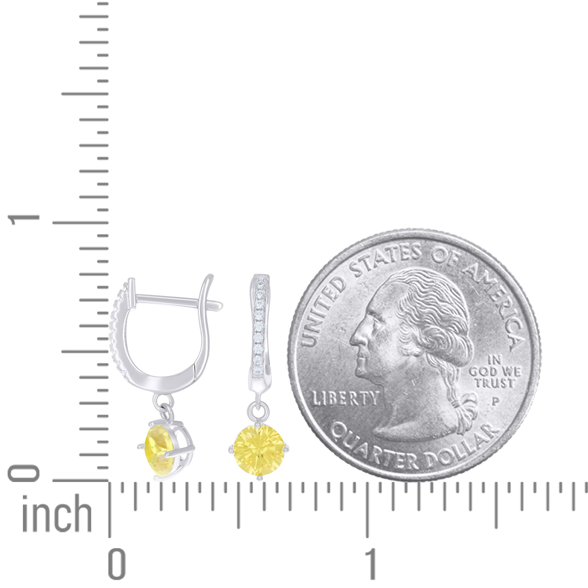 925 Sterling Silver Womens Yellow White Cubic-Zirconia Dangle Hoop Earrings