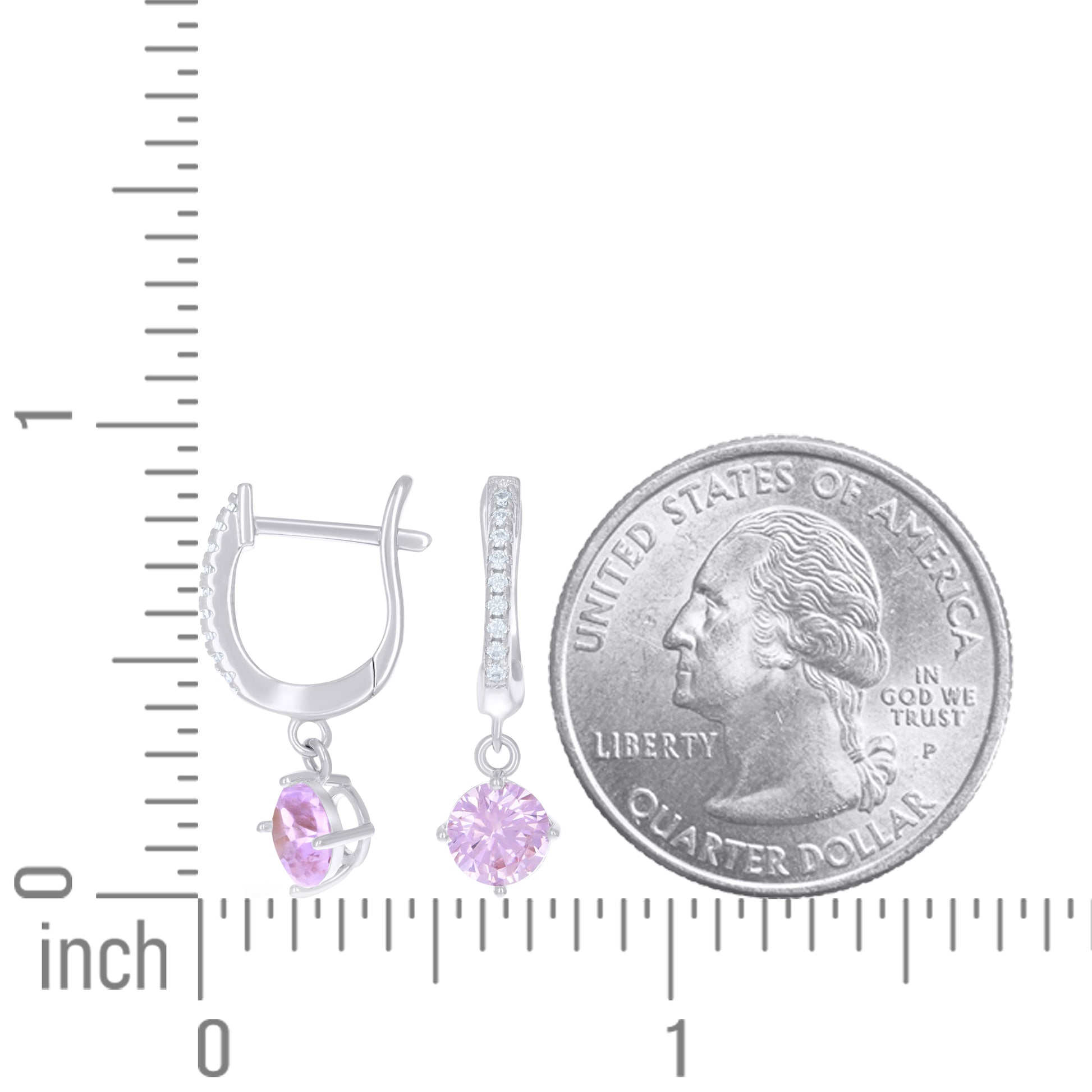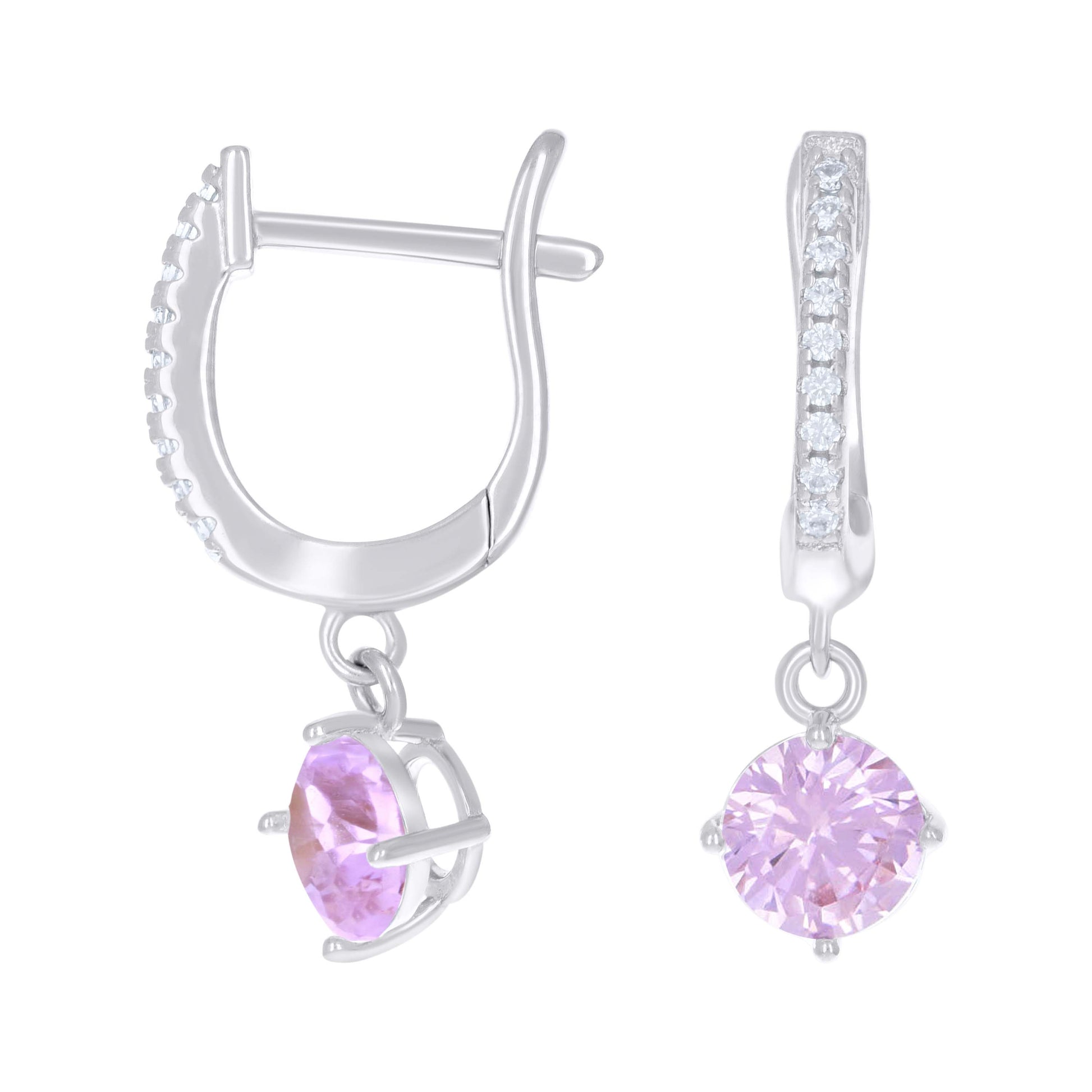 925 Sterling Silver Womens Pink White Cubic-Zirconia Dangle Hoop Earrings