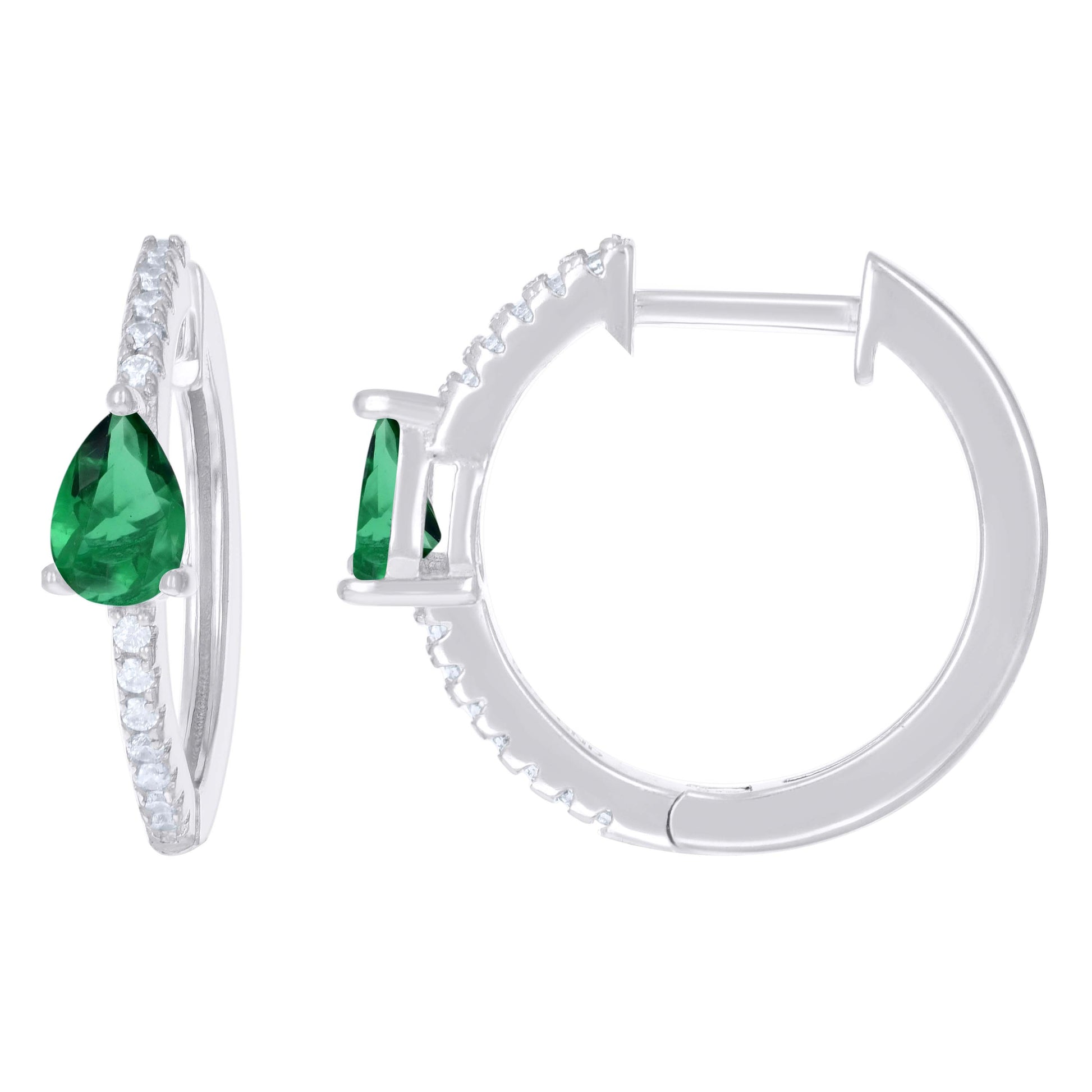 925 Sterling Silver Womens Green White Pear Round Cubic-Zirconia Hoop Huggies Earrings