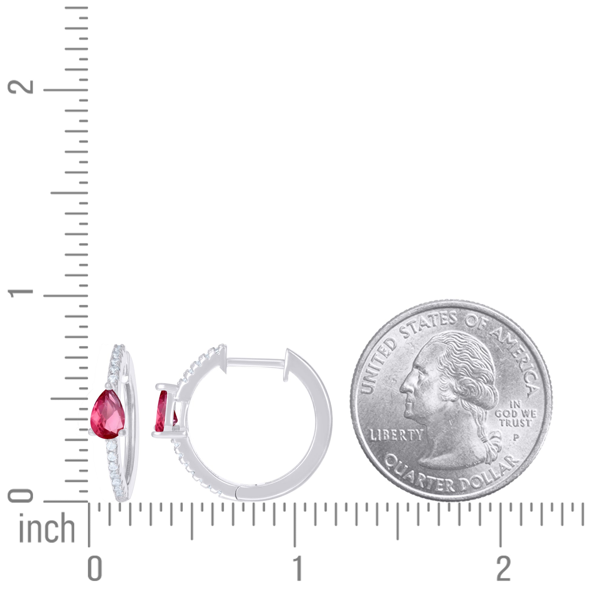 925 Sterling Silver Womens Red White Pear Round Cubic-Zirconia Hoop Huggies Earrings