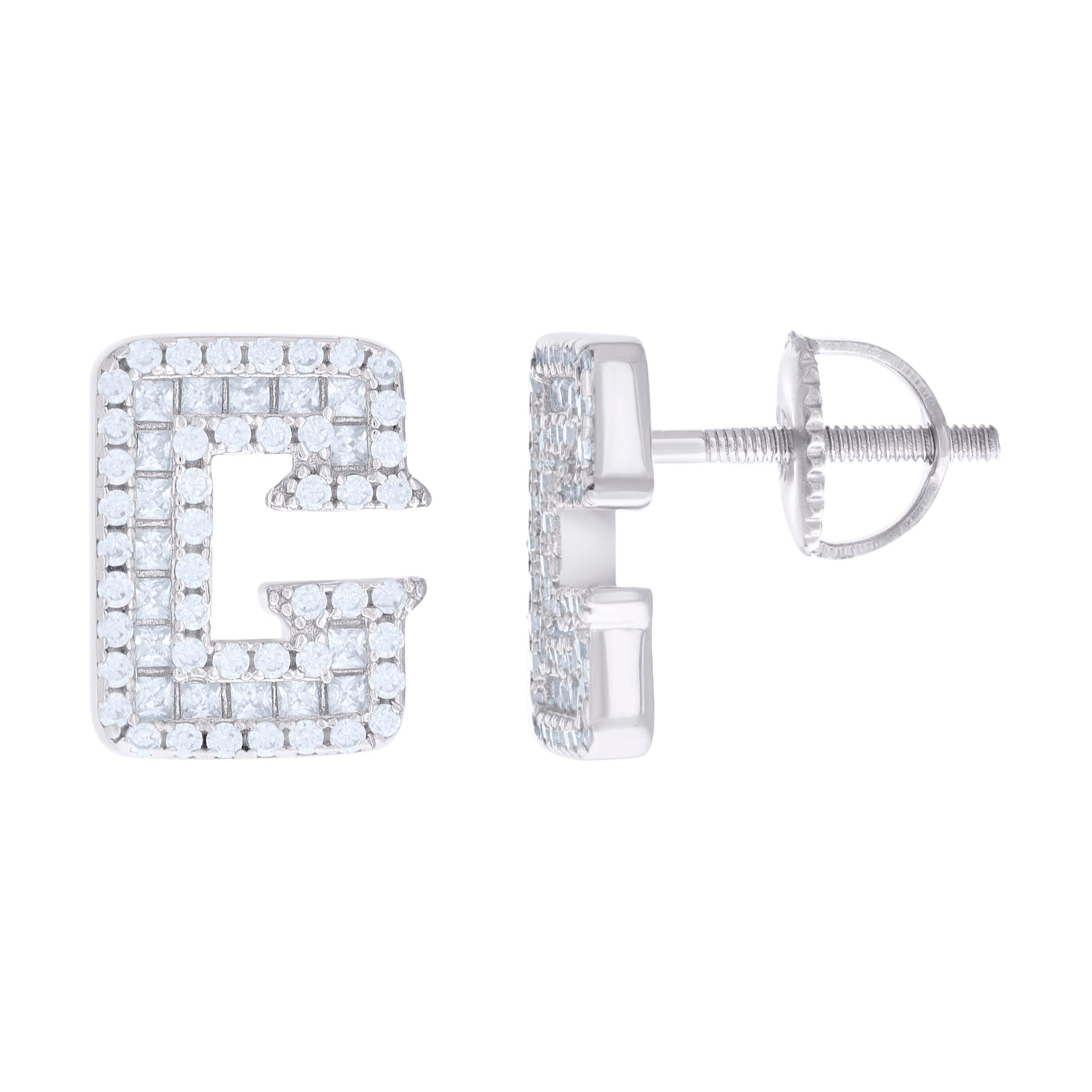 925 Sterling Silver Unisex Princess-Cut Round Cubic-Zirconia Initial Alphabet G Stud Earrings