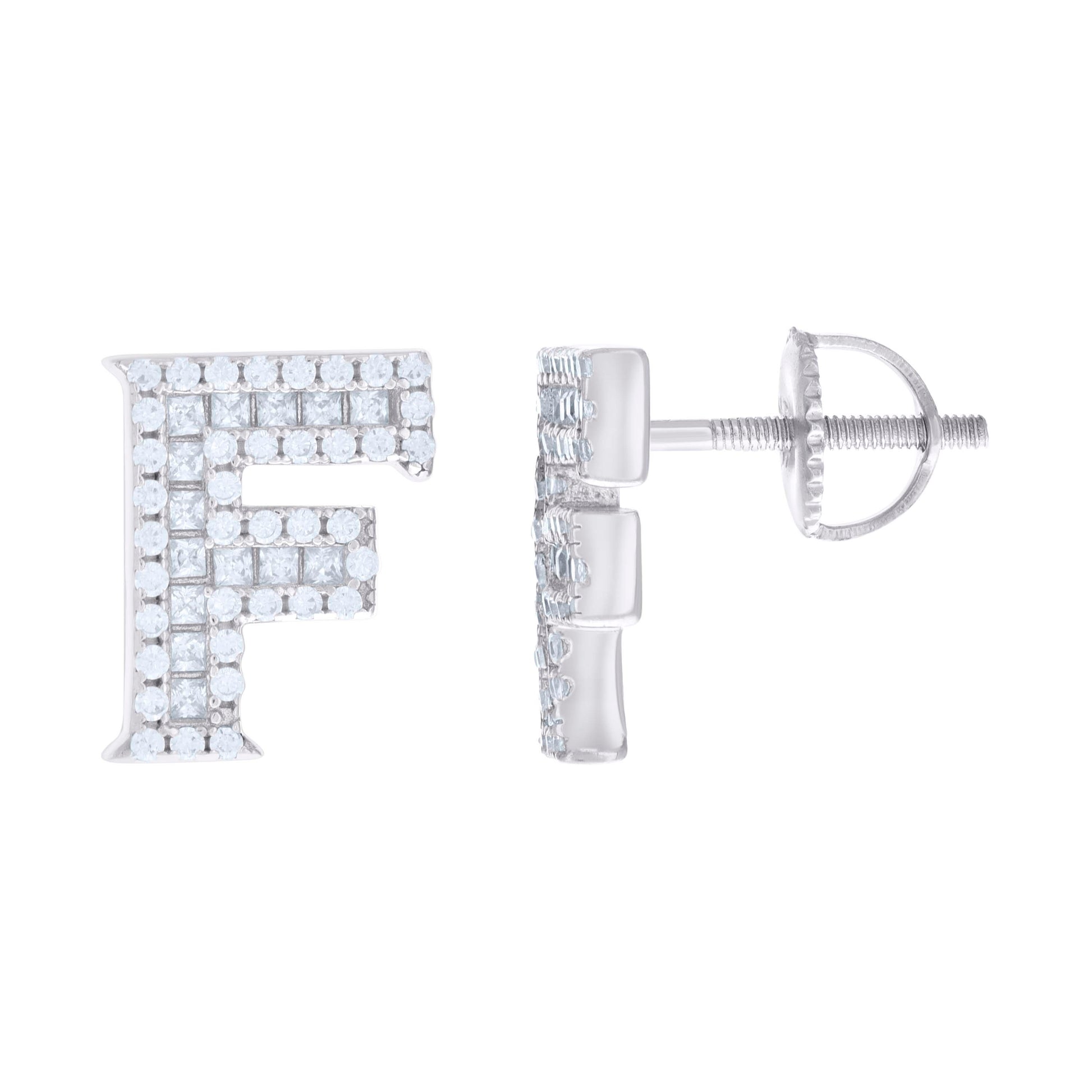 925 Sterling Silver Unisex Princess-Cut Round Cubic-Zirconia Initial Alphabet F Stud Earrings