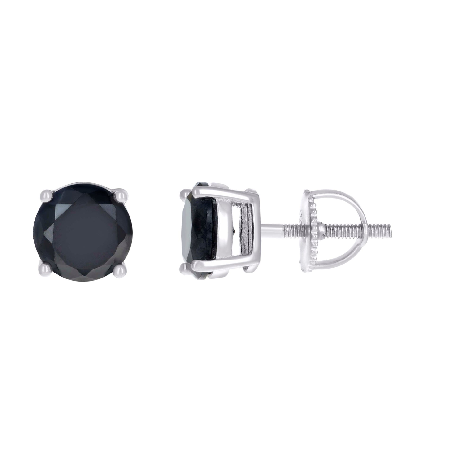 925 Sterling Silver Unisex Black Cubic-Zirconia 6mm Solitaire Stud Earrings