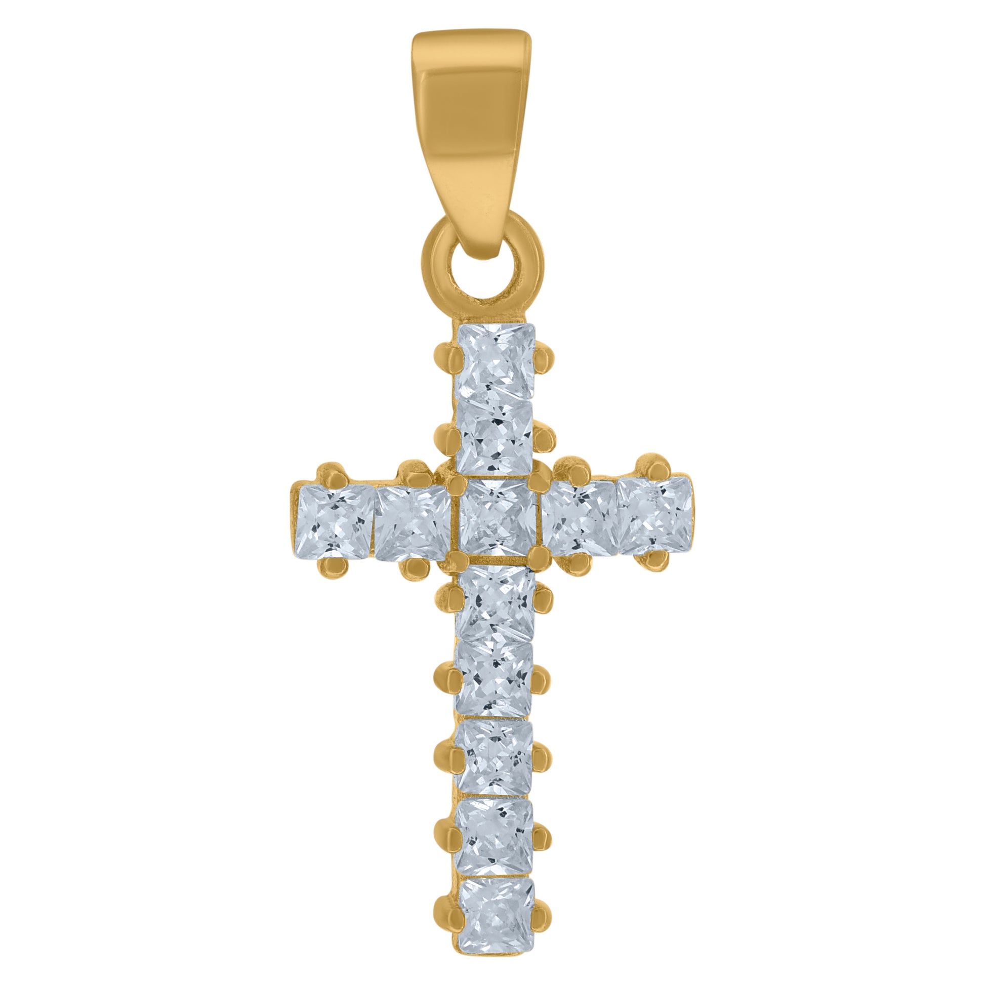 925 Sterling Silver Yellow-Tone Mens Princess-Cut Cubic-Zirconia Cross Religious Charm Pendant