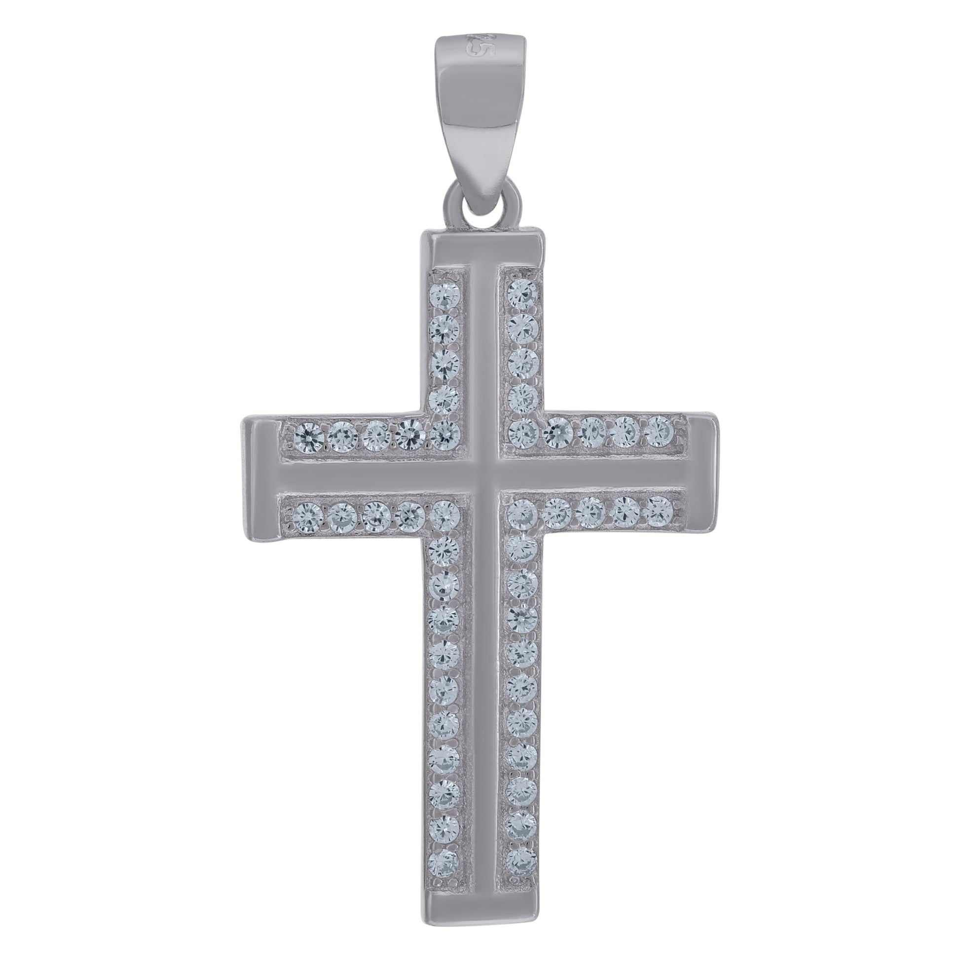 925 Sterling Silver Mens Cubic-Zirconia Cross Religious Charm Pendant